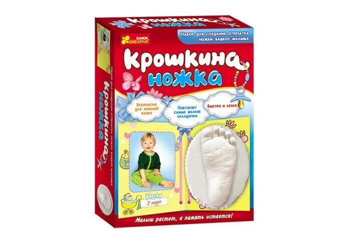 Этот набор - замечательный подарок новоявленным родителям. Он сохранит память о первой улыбке, коротких долгожданных словах - мама-папа, первом неуверенном шаге малыша в такой большой и еще неизведанный мир. Отпечаток ножки вашего ребенка станет настоящей семейной реликвией и потрясающим сувениром для бабушек и дедушек.