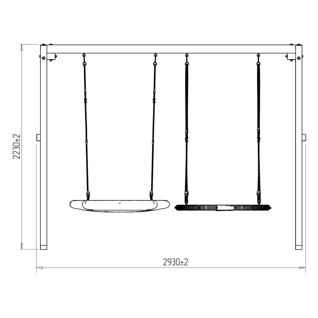 Игровые качели с легкостью устанавливаются на любой свободной от насаждений ровной территории.