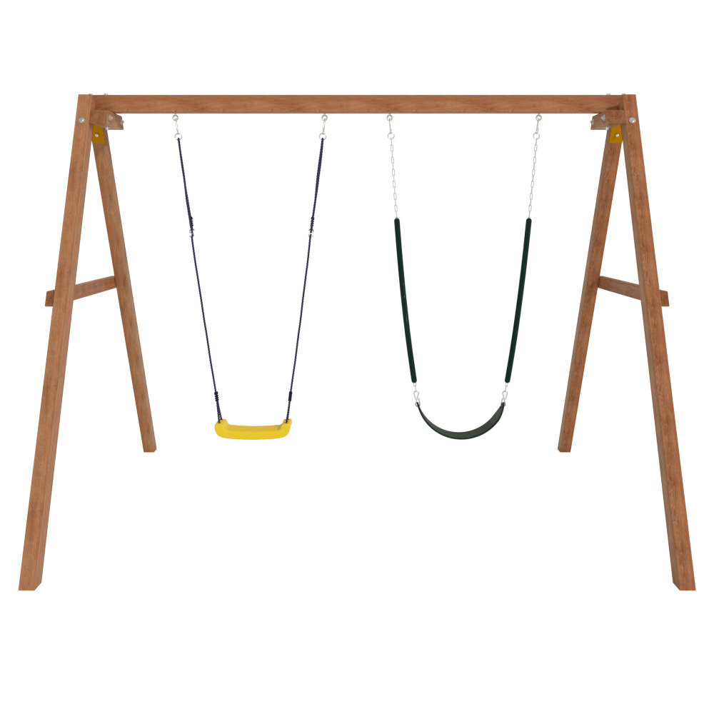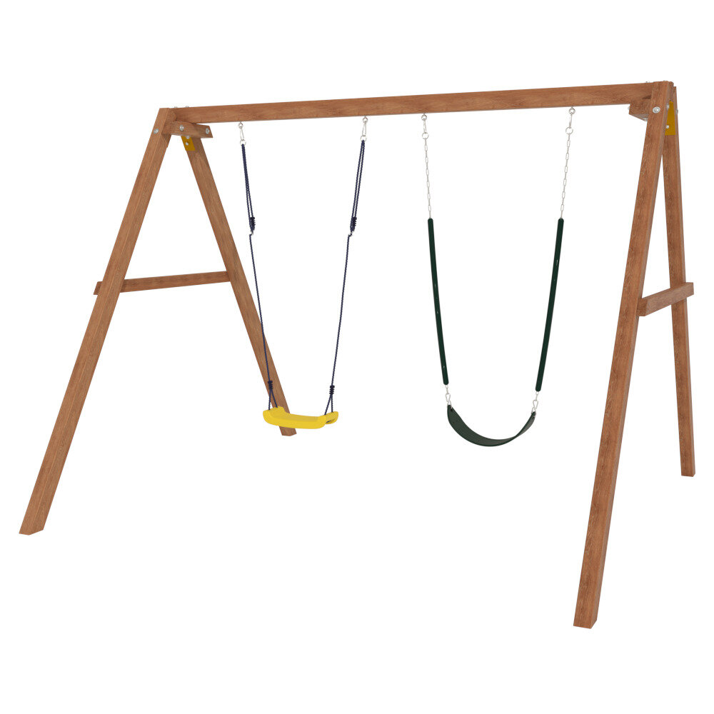 Игровые качели с легкостью устанавливаются на любой свободной от насаждений ровной территории.