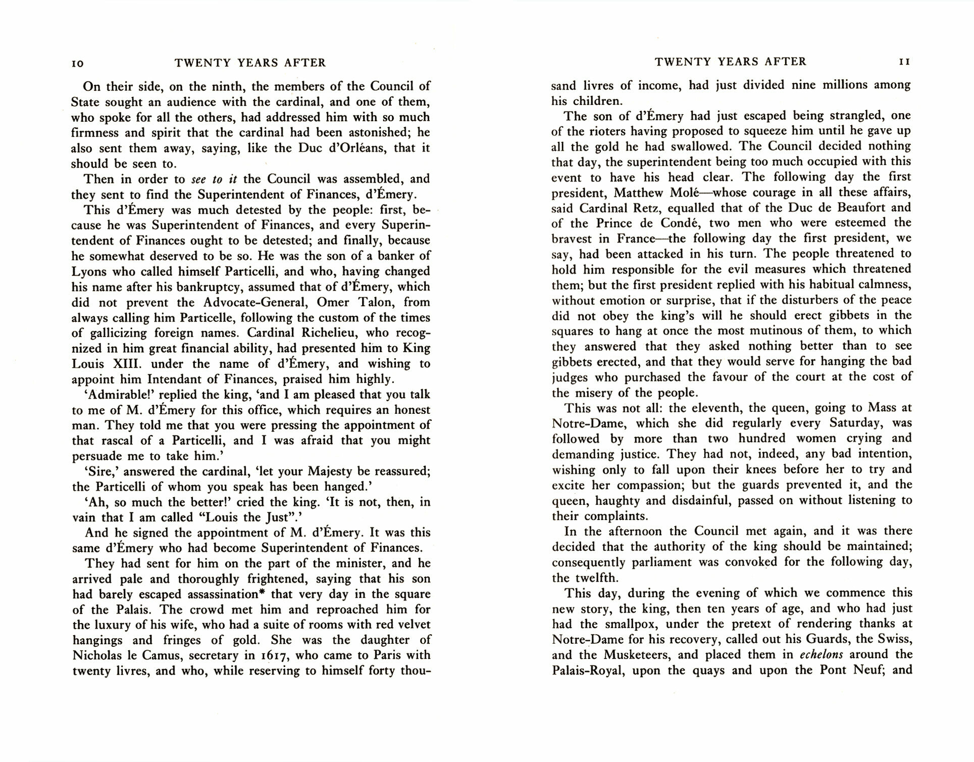 Twenty Years After (1845), the sequel to The Three Musketeers, is a supreme creation of suspense and heroic adventure.
