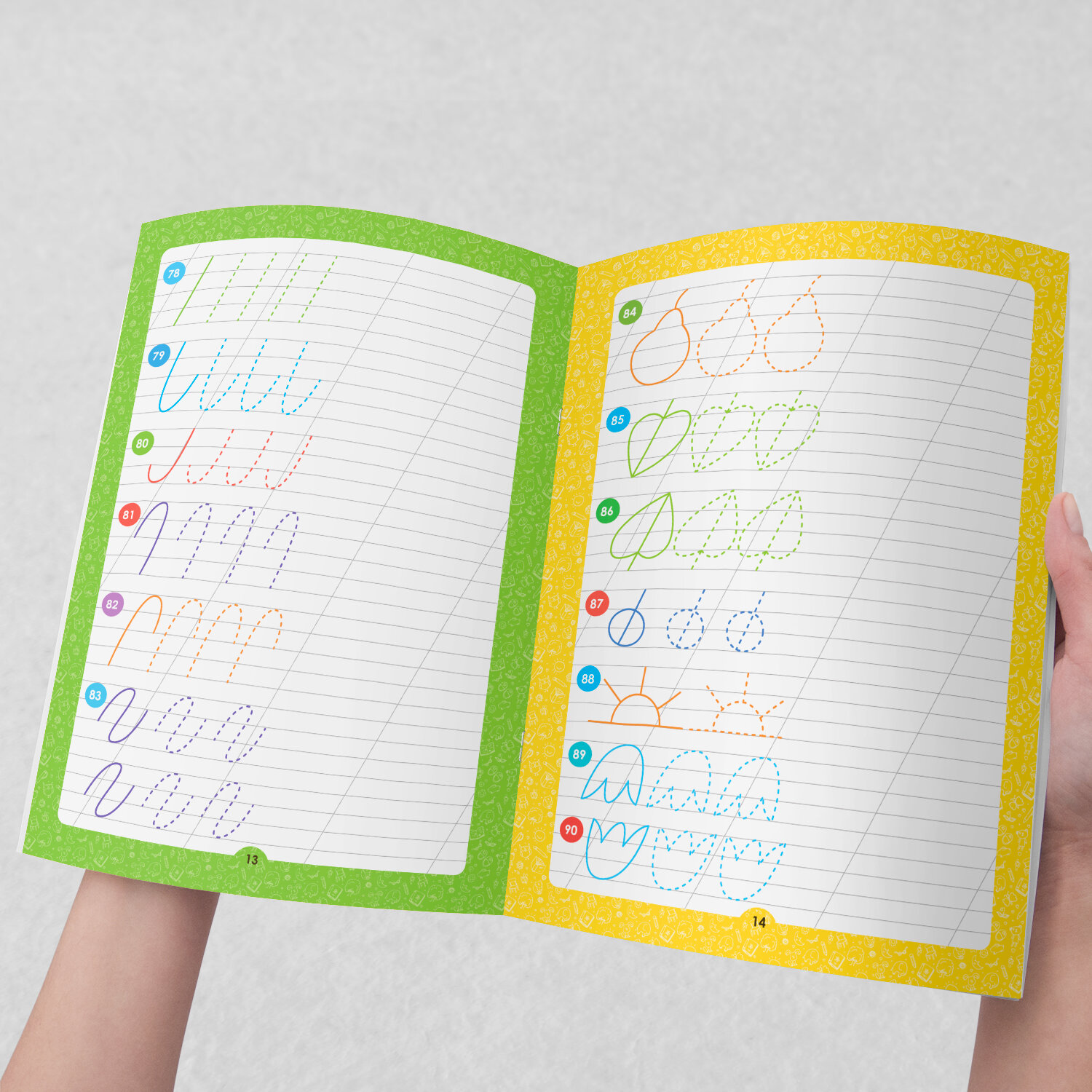 Очень яркая и цветная книжка, в которой 24 страницы. Тонкая, с глянцевой обложкой и мягкими страницами. На каждой нарисованы разнообразные рисунки, от фруктов до корабликов. Рядом изображены контуры этого рисунка и поле для дальнейшего рисования. Также есть и обычные геометрические фигуры и просто разные змейки. Доче понравилось, она с удовольствием занималась. Бумага кстати плотная, можно рисовать и фломастерами, они не просвечивают.