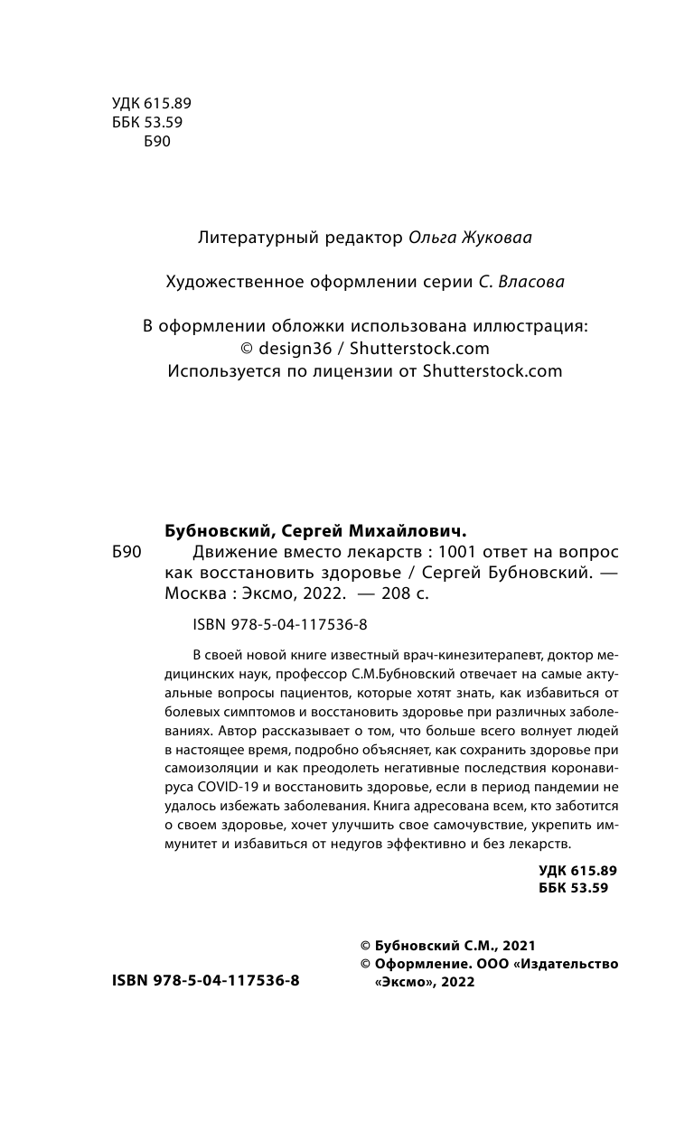Движение вместо лекарств. 1001 ответ на вопрос как восстановить здоровье (Сергей Михайлович Бубновский); Эксмо, 2022