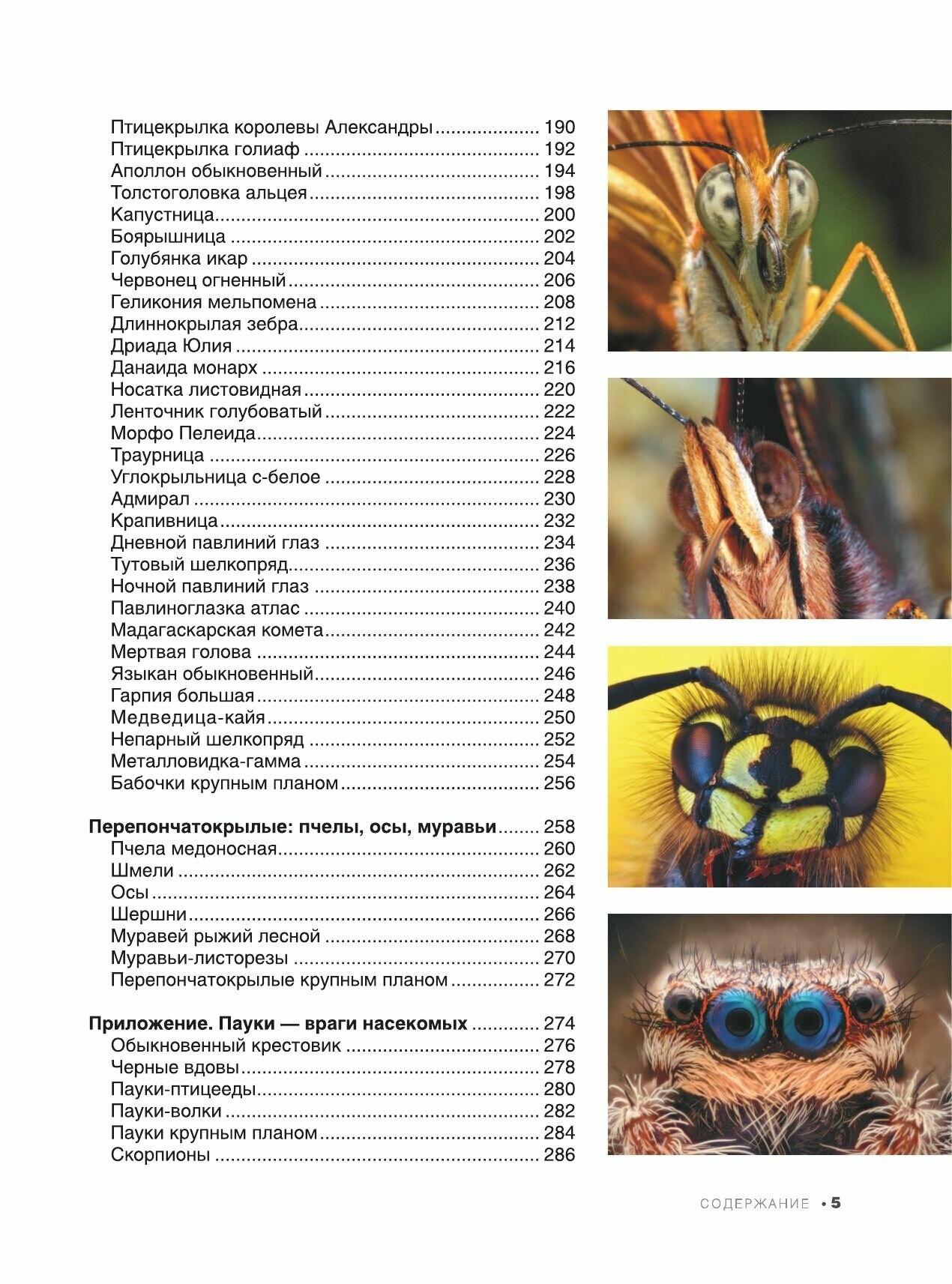 Чтобы рассмотреть насекомых во всех подробностях, необязательно ждать лета, выезжать за город или отправляться в дальние края. Достаточно открыть эту книгу, и все представители самого многочисленного класса животных - изящные стрекозы и бабочки, ловкие кузнечики и богомолы, трудолюбивые пчелы и муравьи, стремительные осы и жуки - предстанут перед вашими глазами во всей красе. Эти небольшие по размерам существам на уникальных макрофотографиях, нередко напоминающие инопланетян, еще раз напомнят вам, насколько разнообразен окружающий мир, и заставят взглянуть по-новому на кажущиеся привычными вещи и явления. А из содержательных статей вы узнаете, как насекомые развиваются, где обитают, чем питаются, на кого охотятся и как сами спасаются от опасностей.