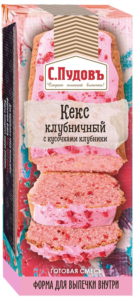 Кекс С.Пудовъ Клубничный с кусочками клубники 300гр
