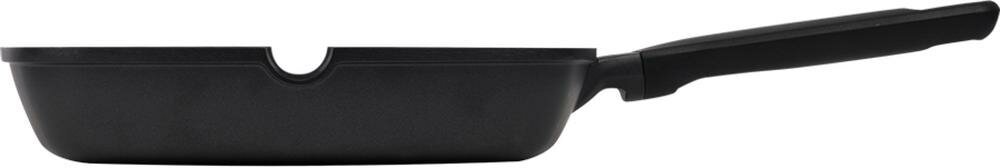 В качестве основного материала использован литой алюминий с отличной теплопроводностью, что обеспечивает равномерность прогрева, высокую скорость приготовления еды и сохранение тепла в течение длительного времени. Он в комбинации со специальным покрытием придает прочность и устойчивость к повреждениям, что позволяет использовать даже металлические лопатки. Бакелитовая ручка со специальным силиконовым покрытием дополнительно повышает безопасность использования, так как исключен нагрев и, как следствие, ожог.