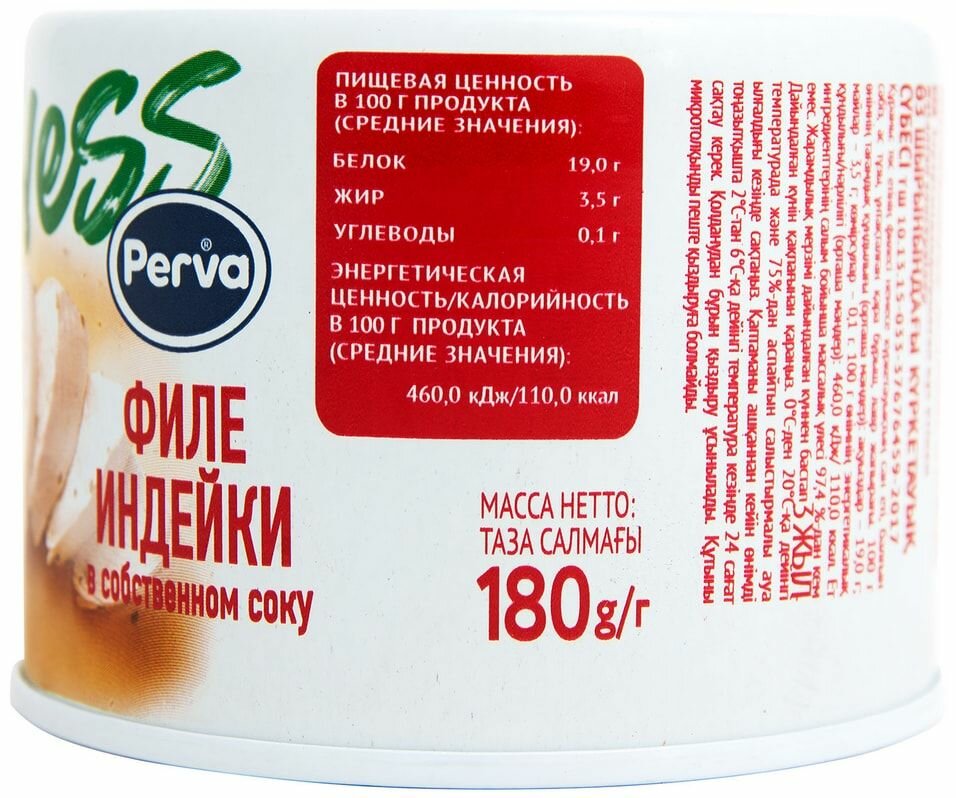 Консервы Perva Fitness с филе индейки - находка для приверженцев здорового питания. С таким продуктом на приготовление полезного и сытного обеда не придется тратить много времени: нежные кусочки филе индейки сохранили сочность и вкус за счет консервирования в собственном соку. Небольшая банка объемом 180 грамм не занимает много места при хранении.
