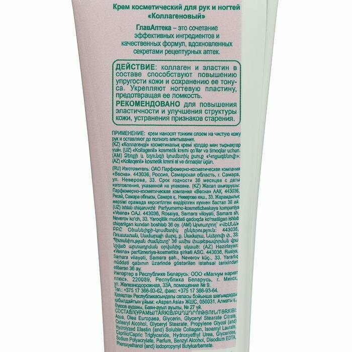 Крем для рук и ногтей ГлавАптека Коллагеновый 45мл