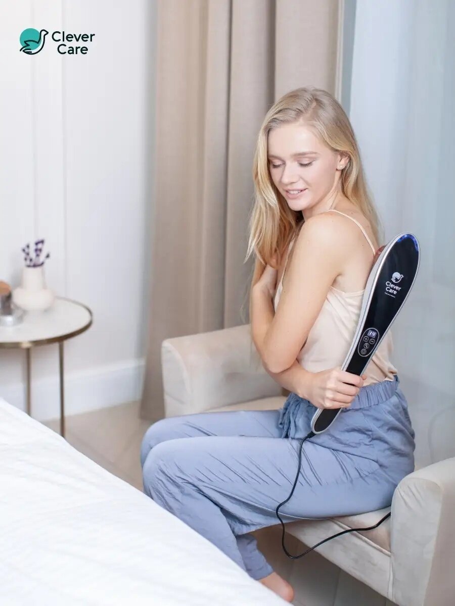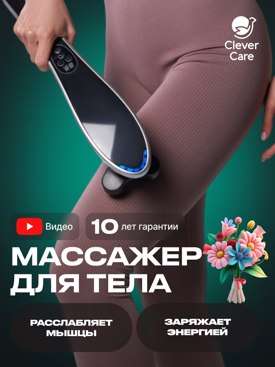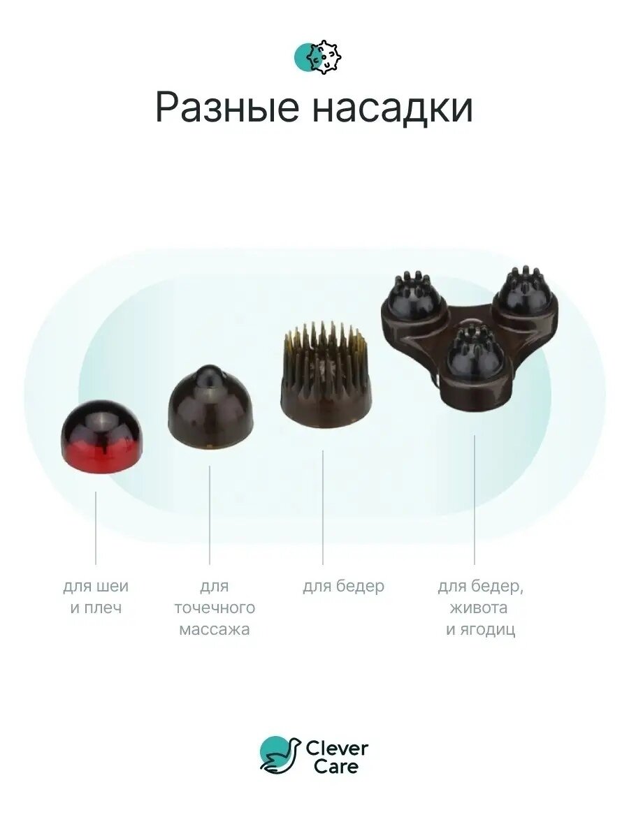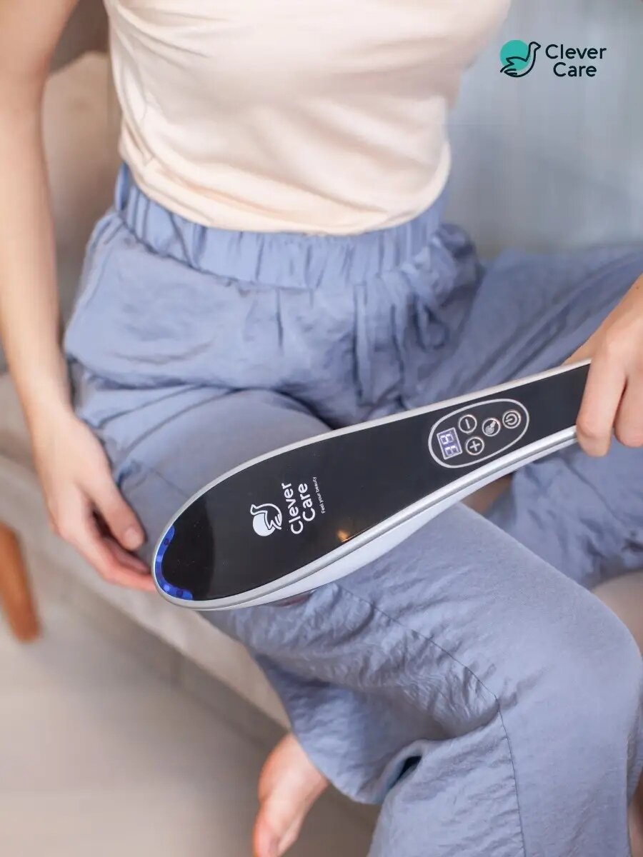 Ручной массажер для тела CleverCare создан для того, чтобы стать незаменимым помощником и профессиональным домашним массажистом для каждого. Сэкономит Вам время и деньги на походах в массажные кабинеты, ведь он: снимает напряжение со спины, шейного отдела и конечностей, благодаря ИК-подогреву и мощному мануальному воздействию, улучшает кровообращение, способствует выведению накопившейся жидкости из тканей, обладает антицеллюлитным эффектом, тонизирует и укрепляет кожу. Доказана его эффективность при борьбе с кожно-жировой прослойкой, которая приводит к похудению при регулярном использовании. Имеет 4 автоматических режима и 4 уровня интенсивности воздействия. Исполнен в стильной и эргономичной форме рукоятки с мощным вибромотором на конце. Удобный в использовании в домашних условиях и простой в эксплуатации, благодаря встроенному дисплею с панелью управления и наличию сменных насадок. Ручной массажер CleverCare это отличный рецепт для Вашего здоровья и красоты!