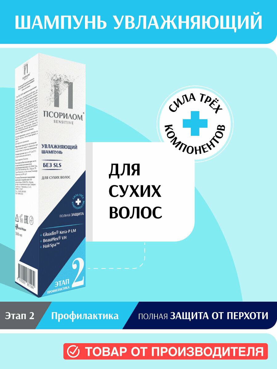 Сервис сравнения цен СкидкаГИД предлагает сравнить цены на товар «Шампунь безсульфатный для сухих волос Псорилом Sensitive 300мл Алкой-Фарм (1474364)»