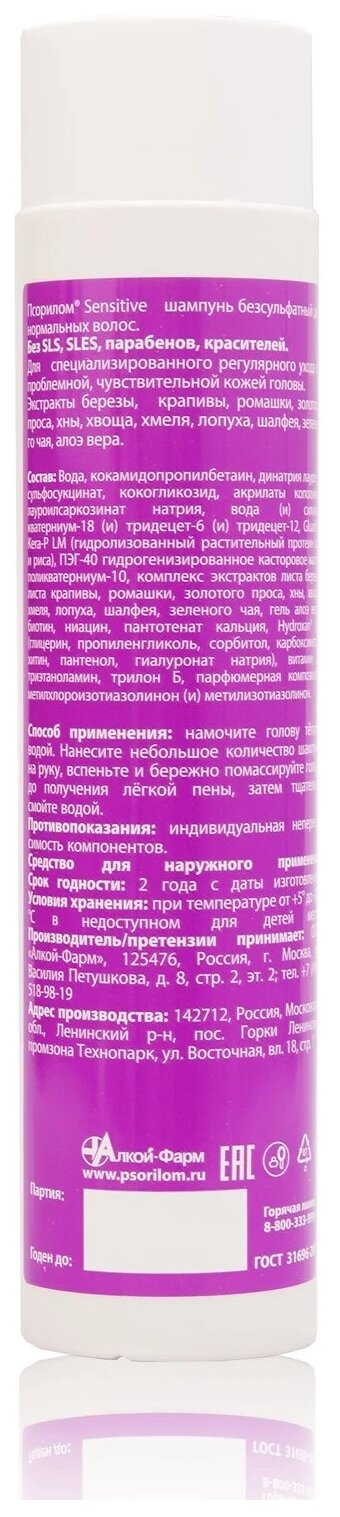 Сервис сравнения цен СкидкаГИД предлагает сравнить цены на товар «Шампунь безсульфатный для нормальных волос Псорилом Sensitive 300мл Алкой-Фарм (1474364)»