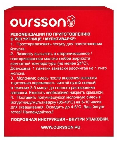Закваски бактериальные Oursson от Орсика Йогурт термостатный 10шт*3г