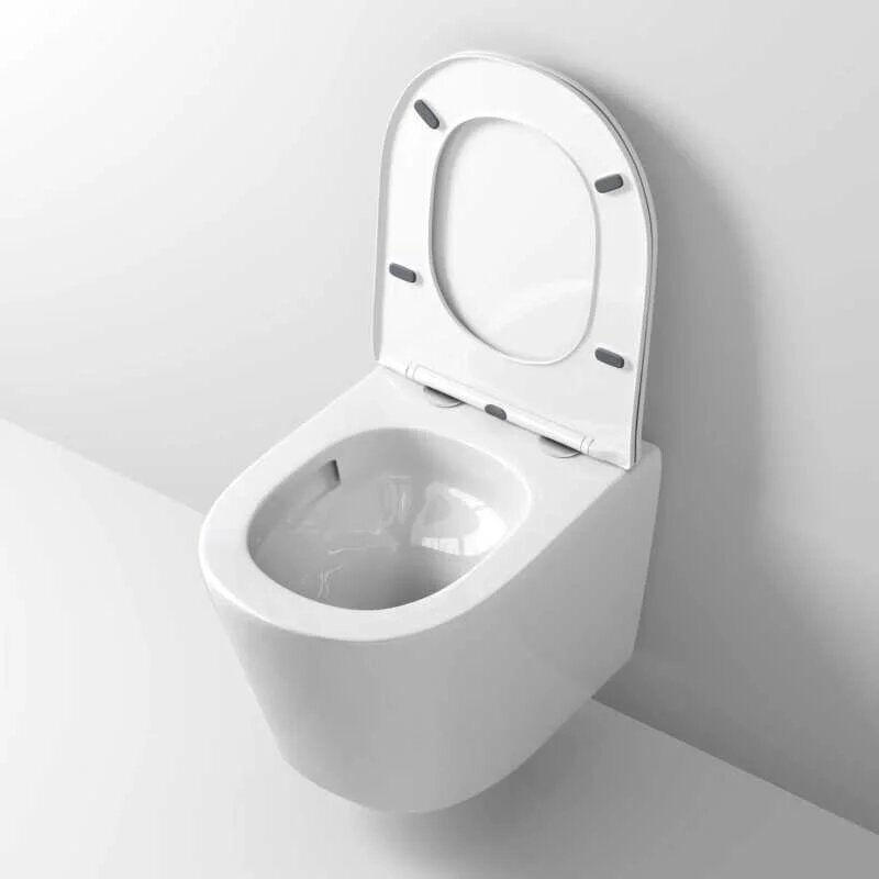 Унитаз подвесной с тонкой крышкой-сидением. Размер: 490 х 360 х 350 мм. -жесткое быстросьемное сиденье из дюропласта, - система микролифт, - металические крепления, - антигрязевая глазурованная поверхность. Система безободкового слива.