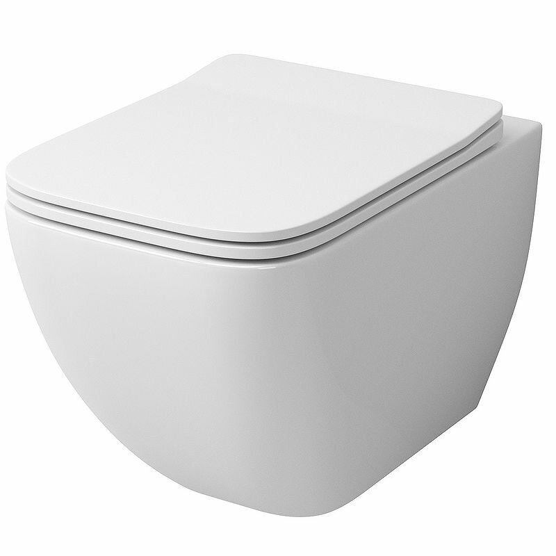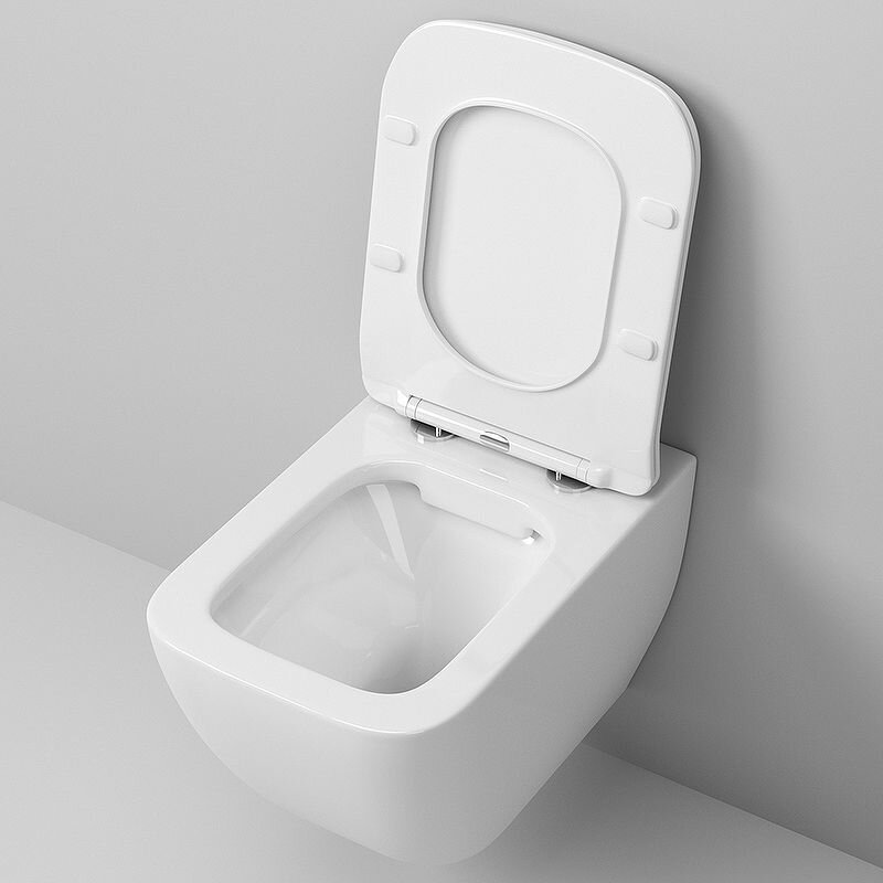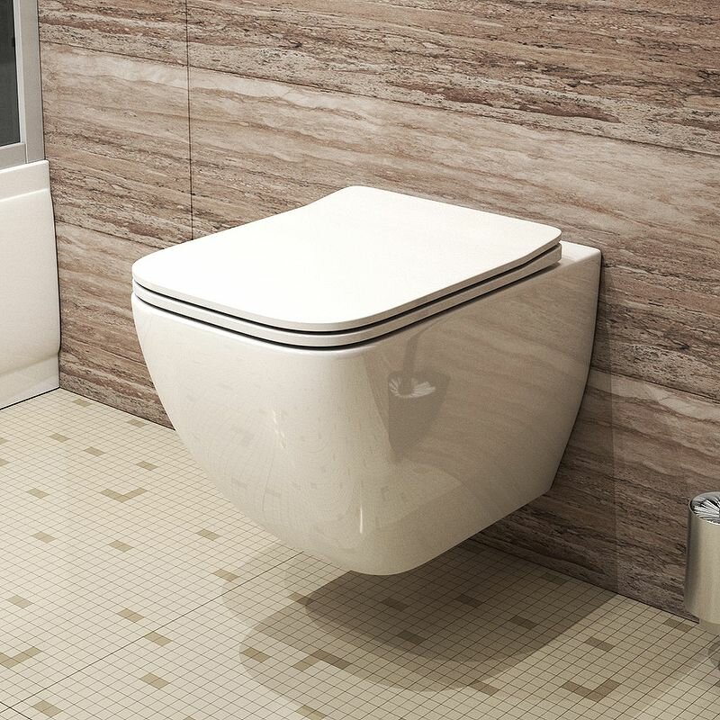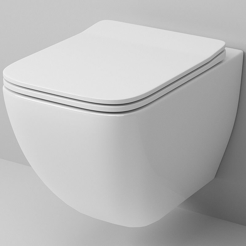 Унитаз подвесной с тонкой крышкой. Размер: 500 х 365 х 340 мм. Сиденье быстросъемное. Система микролифт. Металлические крепления. Безободковая технология. Грязеотталкивающее покрытие.