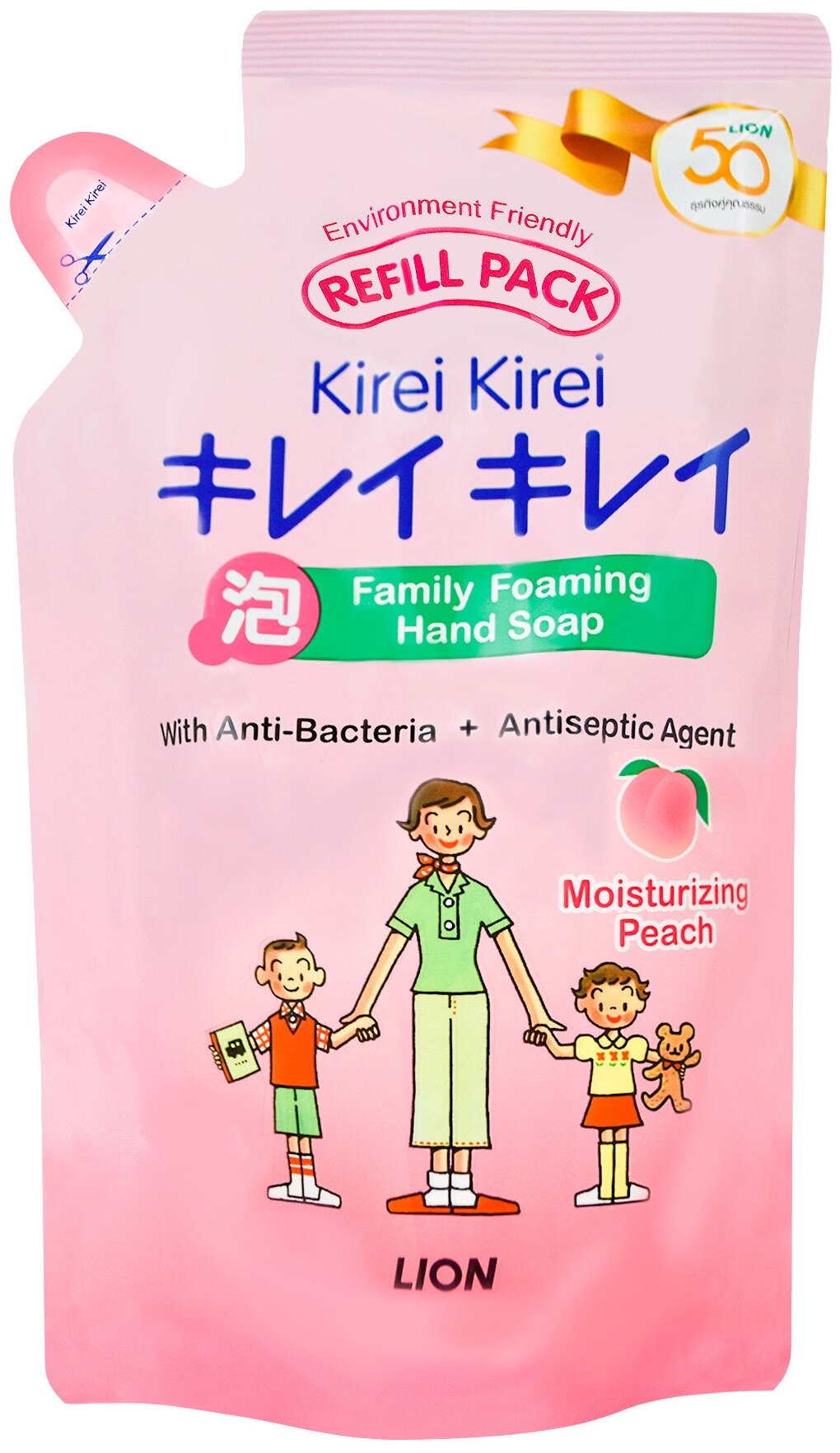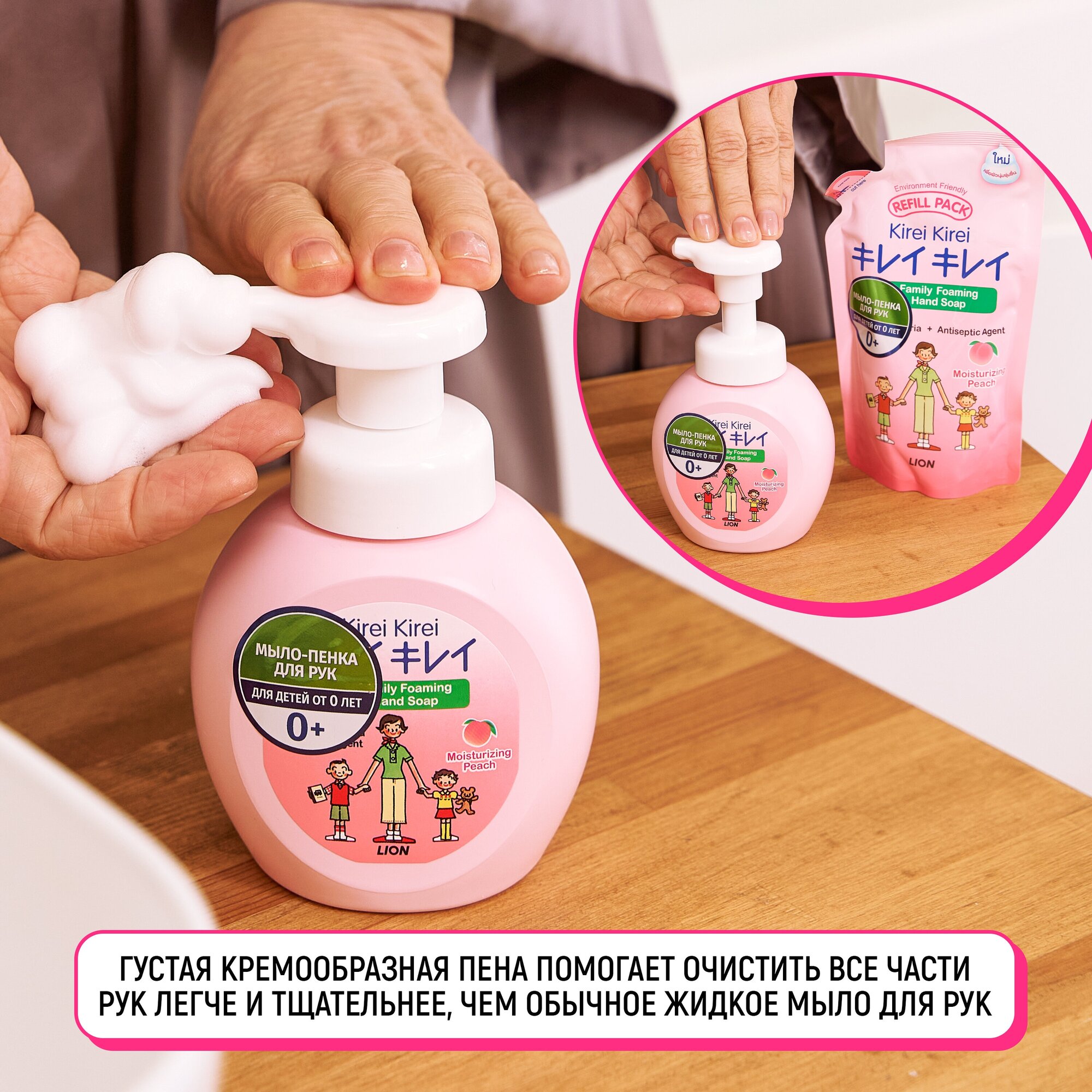 Мыло-пенка для рук Kirei Kirei для детей на основе растительных компонентов с приятным ароматом персика создает обильную пену, бережно очищая и оставляя ощущение гладкости кожи после использования.