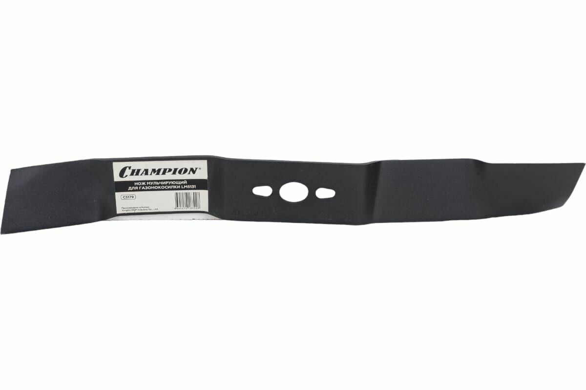 Нож мульчирующий для газонокосилки LM5131 CHAMPION выполнен из высококачественной стали.