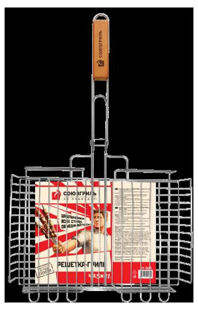 Решетка-гриль СОЮЗГРИЛЬ большая объемная 41 х 27 см.Решетка СОЮЗГРИЛЬ предназначена для приготовления мяса, птицы, рыбы, овощей на углях.Подходит для запекания продуктов разной толщины.Состав: сталь с коррозионностойким покрытием, дерево.