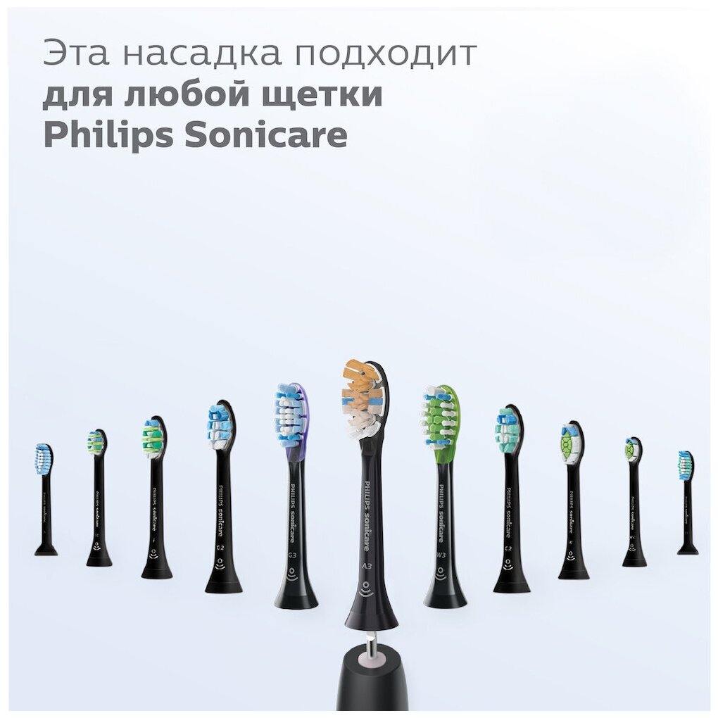 Чистящая насадка A3 Premium All-in-One совместима с ручкой Philips Sonicare (см. список ниже). Просто вставьте ее до щелчка и снимите для удобной замены или очистки.