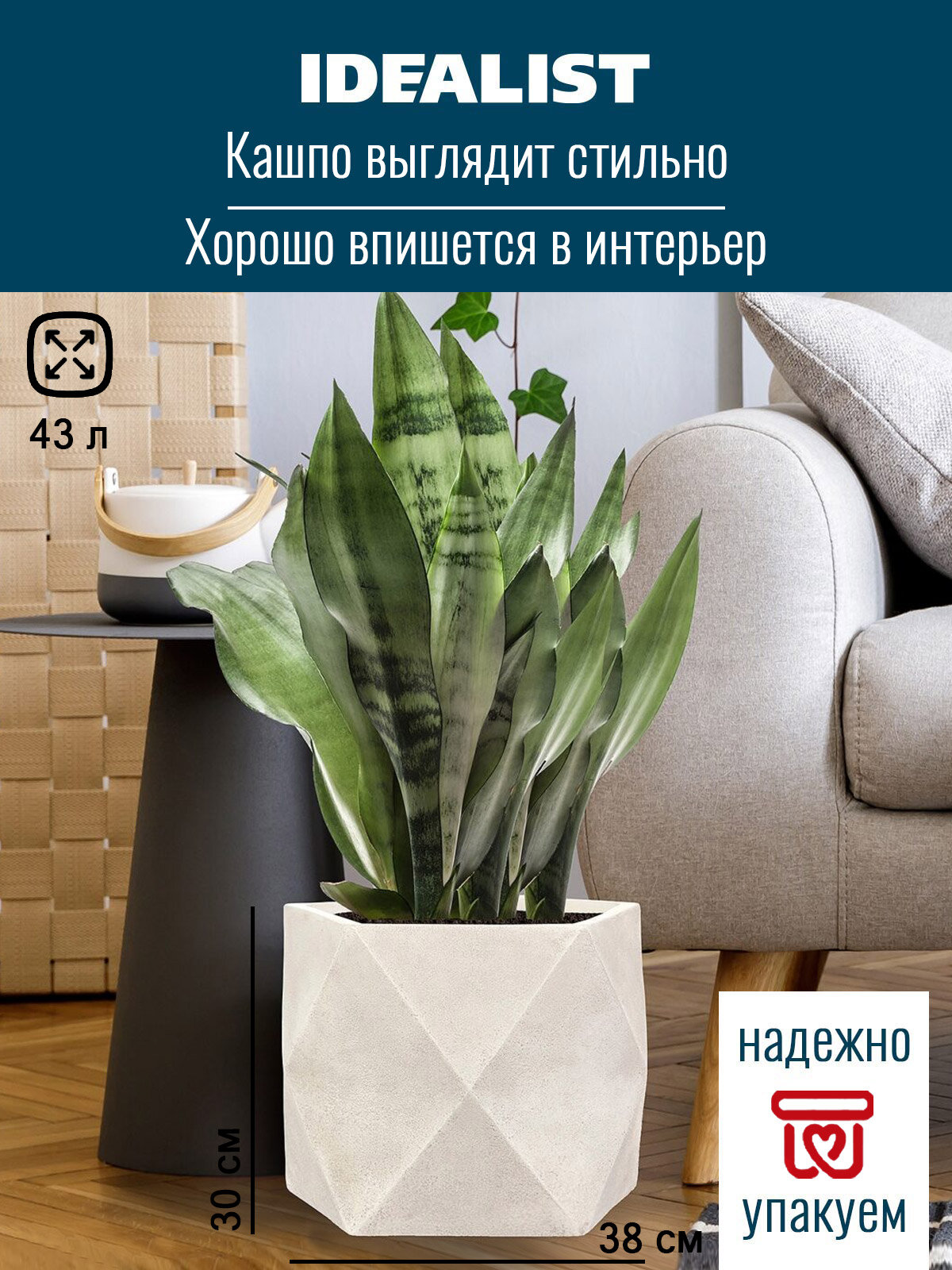 Инновационный материал файберстоун. Матовая текстура в сочетании с геометрическим орнаментом. Легкий вес. Изготовлено вручную. Для интерьерного озеленения. Особенности цветочного горшка . Цветочный горшок прямоугольной формы изготовлен из файберстоуна. Цвет: слоновая кость. Поверхность горшка рельефная с объемными ромбами. Параметры изделия: высота 30см, ширина 38см, длина 38см. В горшке есть метки для сверления дренажного отверстия. Цветочный горшок подходит для комнатного и уличного озеленения. Геометрические формы в современном дизайне Мы взяли за основу форму. И получили совершенное содержание! Коллекция «Геометри» открывает новые возможности для модной геометрии в интерьере. Чаша, подвесная, ромб или круглая — расширяйте возможности для озеленения, выбирая, смешивая и комбинируя формы. Благородные оттенки и строгость форм — это должно быть в современном интерьере. Для каких растений подходят горшки? Цветочные горшки подходят для всех комнатных растений, произрастающих в грунте, а также для уличных растений. Нужны ли внутренние вставки в эти горшки? Внутренние вставки не нужны. Можно насыпать больше керамзита на дно горшка, чтобы образовался дренажный слой. Высокая прочность и современный вид В основе – инновационный качественный материал файберстоун. Благодаря этому прочному композитному материалу горшки сохраняют свои характеристики, благородный внешний вид и аутентичность на долгое время. На вершине дизайна Матовые поверхности, приятные фактуры и природные цвета идеально передают текстуру камня и впечатляют, увлекают, завораживают! Горшки IDEALIST LITE сделаны вручную. Поверхность может иметь следы ручной обработки в виде легких сколов или потертостей. Это придает горшкам естественность и свидетельствует о творческом процессе производства. С помощью рук гончаров рождаются настоящие шедевры! Удобство перемещения Не удивляйтесь, солидный внешний вид и высокое качество исполнения IDEALIST LITE не превращают их в громоздких тяжеловесов. Благодаря использованию современного материала файберстоун даже самые крупные горшки остаются вполне мобильными. Защита природы - материал может быть переработан Используя горшки IDEALIST, вы заботитесь о нашем наследии, ведь горшки можно переработать и не загрязнять природу!