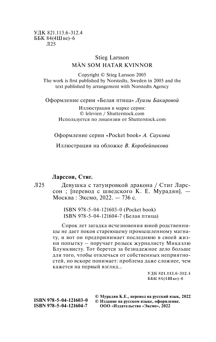 Девушка с татуировкой дракона (Стиг Ларссон); Эксмо, Редакция 1, 2024