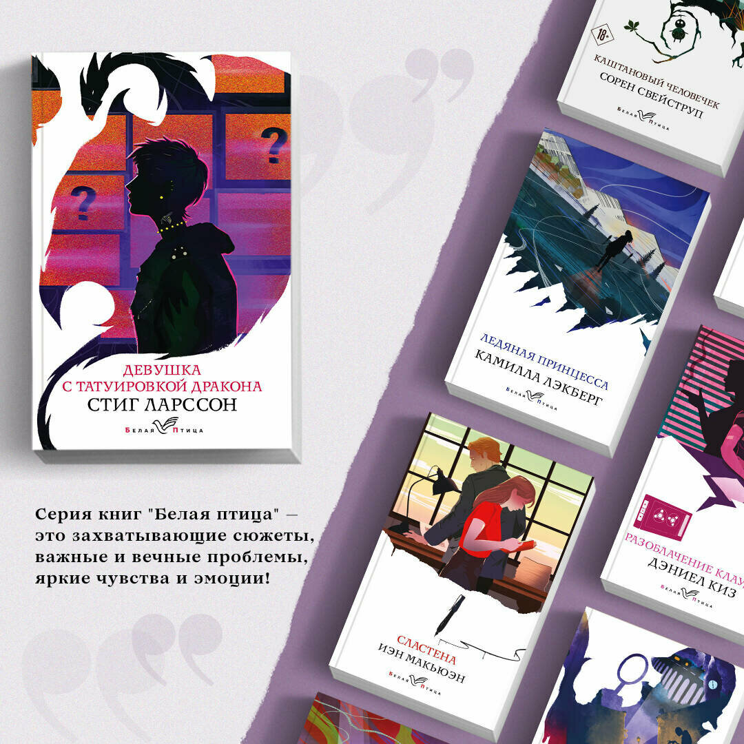 Очень нравится серия "Белая птица" - оформление оригинальное, стильное, приятно держать в руках и вместе книги смотрятся интересно. Бумага тонковатая, но это ничуть не портит впечатление.