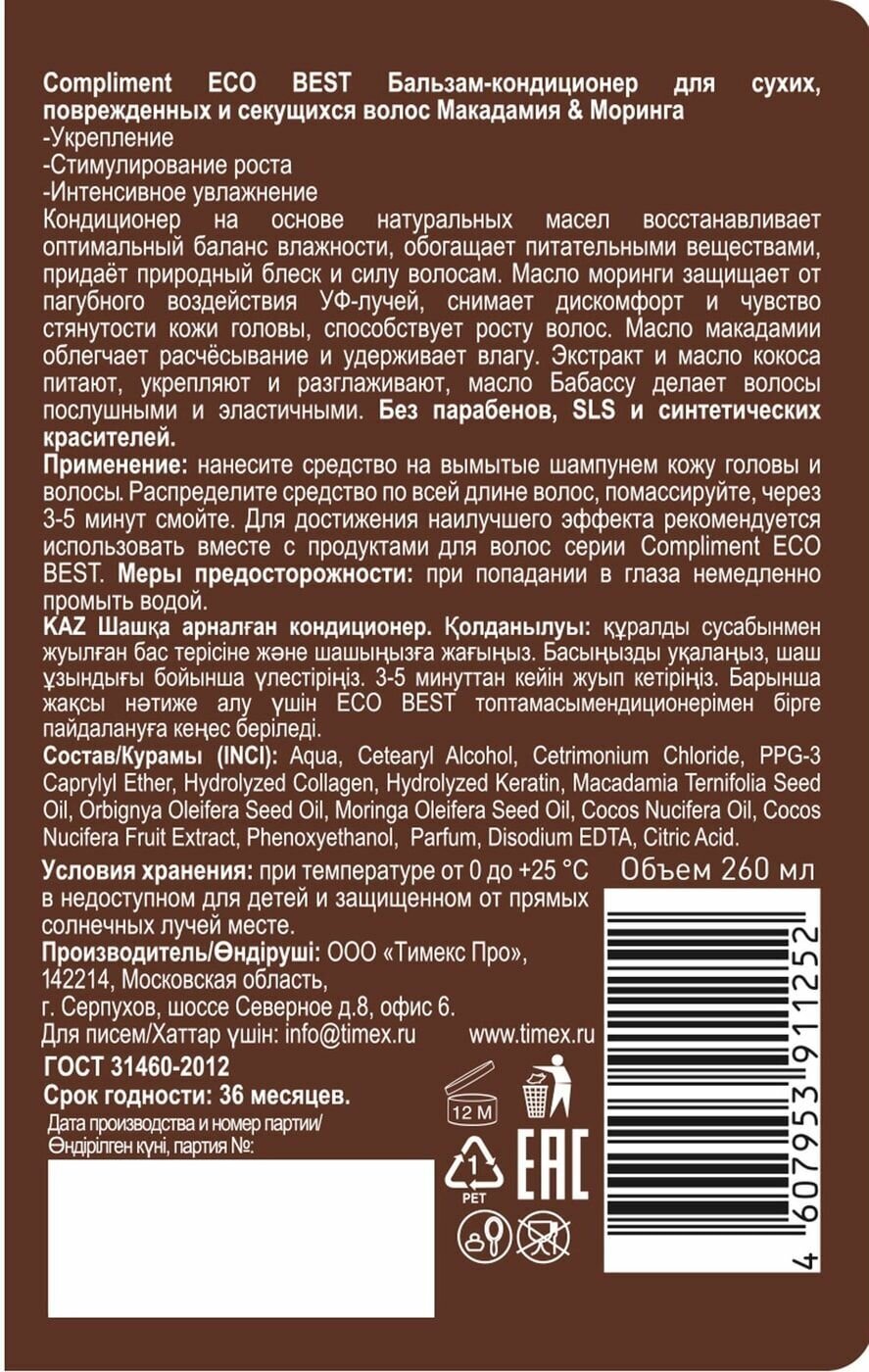 Бальзам-кондиционер для волос Compliment Eco Best Макадамия & Моринга 260мл
