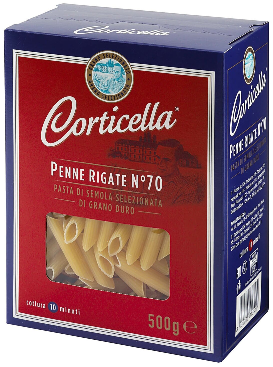 О товаре Макароны Corticella Penna Regate Перья №70 500г - популярная паста, изготовленная в лучших итальянских традициях. Паста в форме полых трубочек со скошенными краями внешне напоминает основание пера, поэтому и носит название «penne», что в переводе с итальянского означает «перья». Пенне ригате отлично сочетается с самыми разнообразными соусами. Прекрасно подходит для создания различных запеканок, станет главным блюдом праздничного обеда. Благодаря отсутствию яиц в составе макаронные изделия идеально подходят для постного меню.