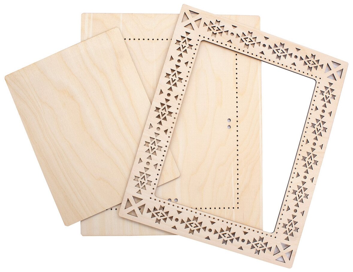 Резная рамка 'Узор геометрия' из тонкой фанеры – оригинальная альтернатива классическим багетам. Канва закрепляется на основе аккуратными стежками. Вышивка в резной раме выглядит как законченное произведение и яркий сувенир. Рекомендации: Прежде чем оформить вышивку в рамку, подберите зажим, иглу, а также нитки желаемого цвета и толщины. Фанеру можно предварительно покрыть лаком, морилкой или расписать акриловыми красками. Внимание: дождитесь, пока покрытие полностью высохнет! Возможные размеры вышивки: 28х33 см, 19х24 см.