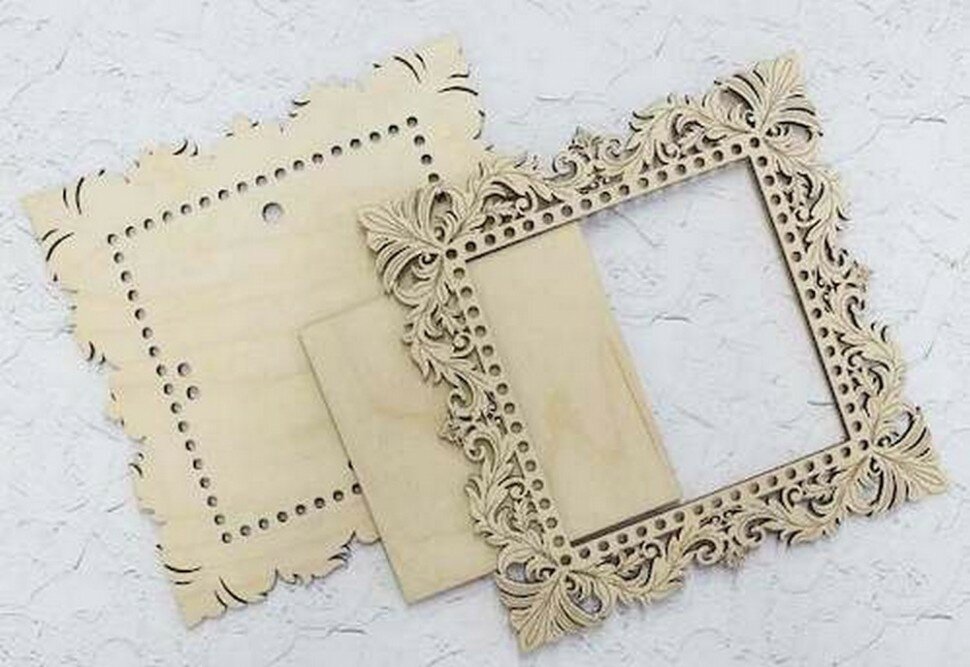 | В набор входит | три детали (фанера): деталь А (основание рамки), деталь В (основа для вышивки) и деталь С (верхняя накладная рамка). |