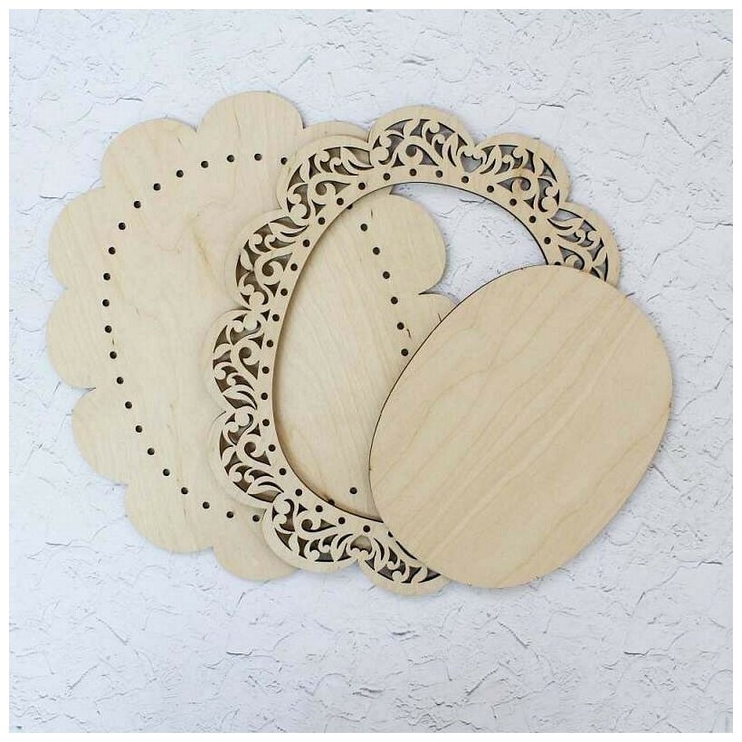 Рамка овальная малая ажурная 16х19/10х12,5 Щепка ОР-020 Состав: три детали (фанера): деталь А (основание рамки), деталь В (основа для вышивки) и деталь С (верхняя накладная рамка).