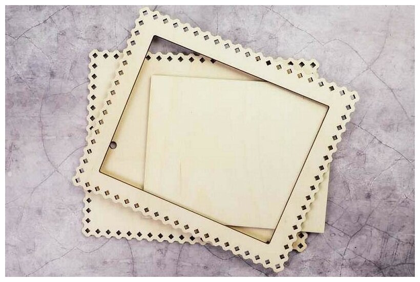 Рамка Ромбики средняя ажурная 19,3х23/14,5х18,2 Щепка ОР-083 Состав: три детали (фанера): деталь А (основание рамки), деталь В (основа для вышивки) и деталь С (верхняя накладная рамка).