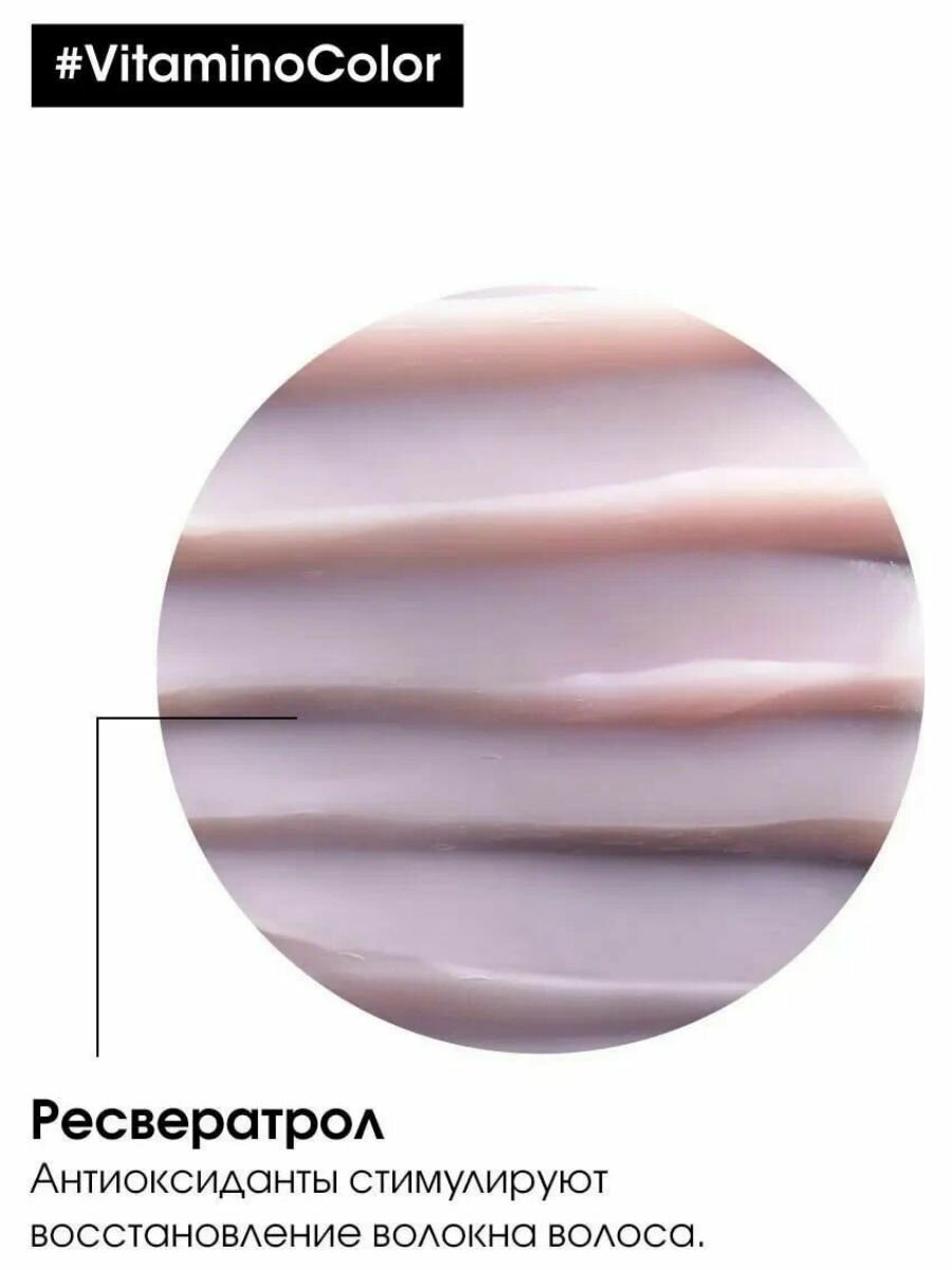 Его легкая текстура не утяжеляет волосы, а специальная формула поддерживает насыщенность цвета. Ресвератрол - натуральный антиоксидант из ягод винограда, защищает пигмент от вымывания.