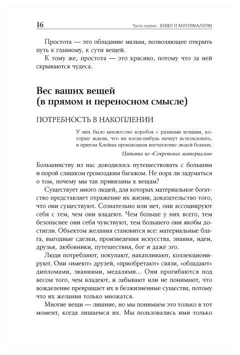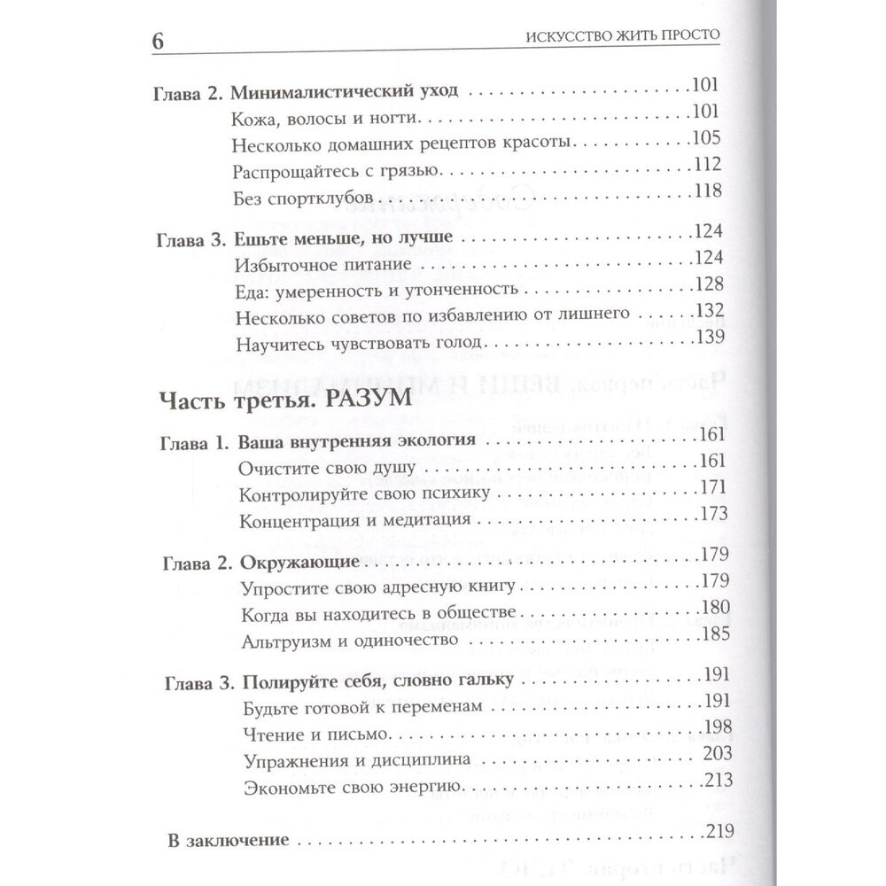 Главная цель - освободить мысли от избытка информации, стремиться к простоте, ведь это и есть обязательное условие счастливой жизни. Простота позволяет жить будучи свободными от предрассудков, ограничений и инерции, которые не дают нам сосредоточиться и становятся источником стресса, проблем. Данная книга - один из лучших «путеводителей» в мир полной и счастливой жизни, где нет места излишествам. Ведь отказавшись от владения многим, Вы получите больше времени, которое сможете посвятить саморазвитию. Развиваетесь - значит меняетесь, а меняетесь - значит живете. По-настоящему, на полную катушку, та, как нам этого хочется.