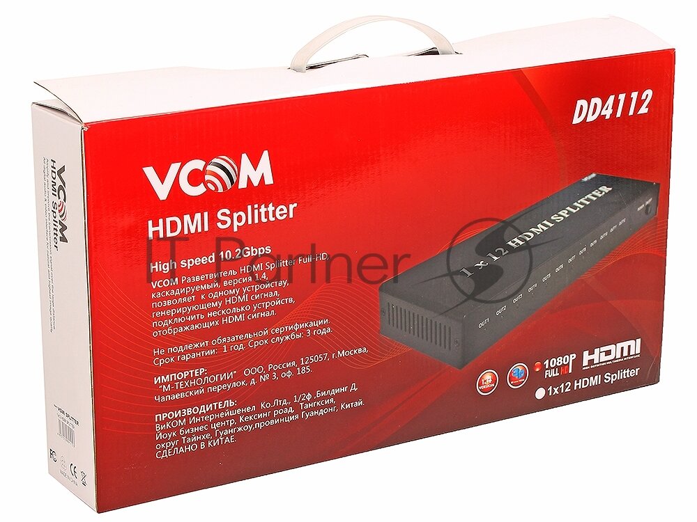 Каскадируемый разветвитель VCOM HDMI Spliitter 1=>12 3D Full-HD 1.4v, каскадируемый VCOM <DD4112> (черный)