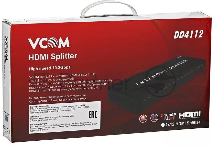 | Наименование модели | Разветвитель HDMI Splitter 1 to 12 VCOM |