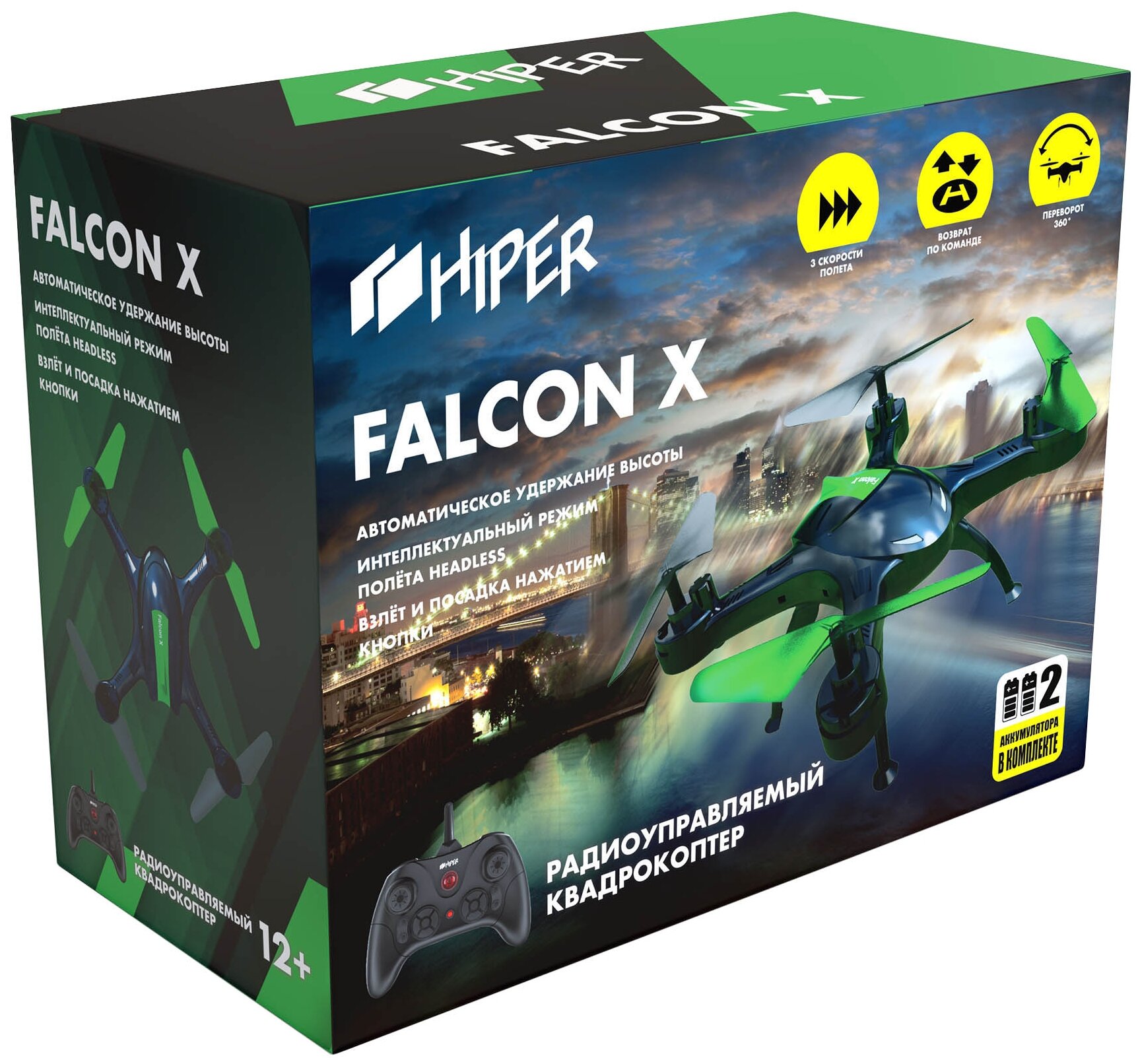 | Комплектация | 2 АКБ в комплекте, Радиоуправляемый квадрокоптер HIPER «FALCON X», инструкция, кабель USB для зарядки аккумулятора, комплект запасных пропеллеров, отвертка, пульт управления |