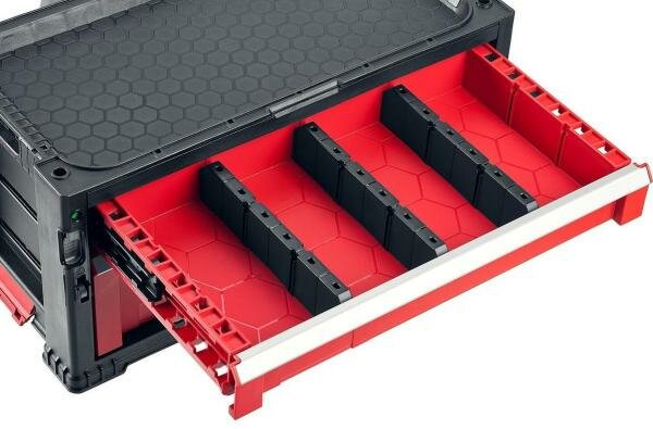 | Прочие особенности и свойства | Ящик с 2 выдвижными полками DRAWER-2, 22" KETER 38382-2. 1 глубокая полка с переставными разделителями. Ударопрочный пластик не подвержен коррозии, короблению, вмятинам. |