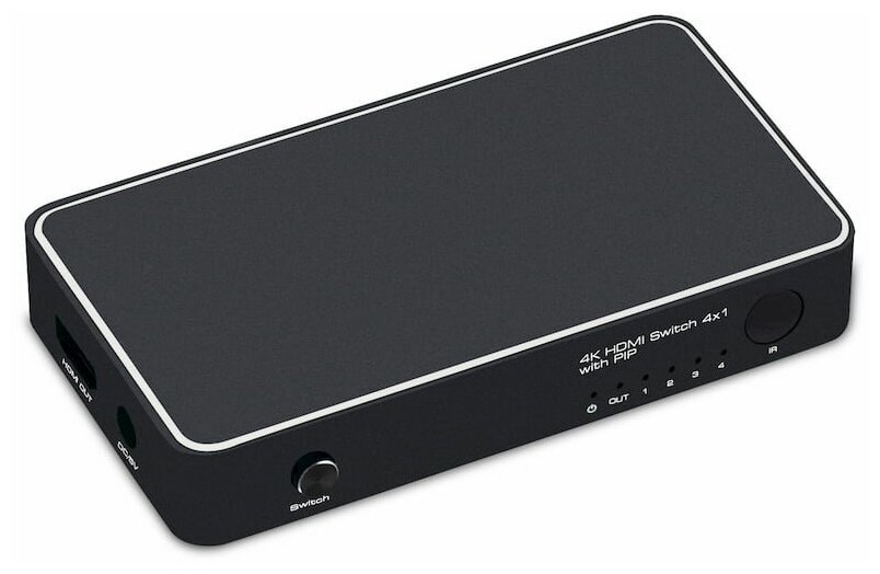 Свитчер Greenline GL-v401A предназначен для подключения нескольких источников цифрового HDMI сигнала к HD-телевизору, проектору или монитору. С помощью переключателя входного сигнала осуществляется одновременное подключение всех источников и последующее переключение между ними.Теперь компьютер, ноутбук, Blu-ray проигрыватель, игровая приставка или домашний кинотеатр, могут быть всегда подключены к телевизору, вне зависимости от того, что используется в данный момент, а значит нет необходимости постоянного переключения кабелей.В первую очередь, свитчер нужен для продления срока службы вашей техники. Ведь при переключении кабеля во время работы техники, HDMI порт может выйти из строя из за разницы потенциалов. Будьте внимательны, данная поломка не попадает под гарантийный ремонт.Еще одной проблемой является банальное расшатывание HDMI входа во время частого переключения, что также со временем выводит его из строя.Для решения данных проблем и повышения комфорта от использования нескольких устройств с одним ТВ и разработан HDMI свитчер.Данная модель оснащена 5 HDMI 1.4 портами, из которых 4 входных и 1 выходной.Поддерживаемые разрешения, до 4Kx2K 30HzПоддерживает функцию PiP “Картинка в картинке” - до 4 видеопотоков с разрешением 4K на 1 мониторе.Пульт дистанционного управленияВстроенный усилитель сохраняет передачу сигнала без искажений и потерь и позволяет использовать HDMI кабели длиной до 15 м, предоставляя возможность максимально удобного и эффективного размещения оборудования.Переключение между источниками сигнала осуществляется при помощи пульта ДУ и кнопки на лицевой панели. Простота управления обеспечивает максимально комфортное использование.Питание осуществляется от сети 220В при помощи адаптера 5V/1A, подключаемого в разъем на корпусе. Адаптер питания поставляется в комплекте с устройством.Товар сертифицирован для продажи в России и странах ТС.