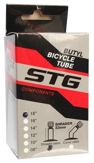 Велосипедная камера для колес 18" с прямыми автомобильным ниппелем Schrader длиной 33 мм.