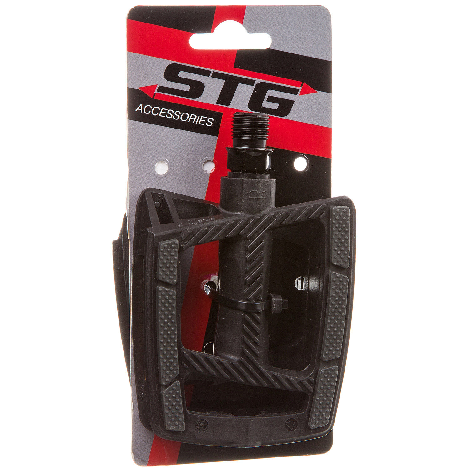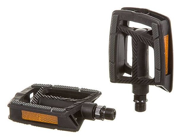 Удобные пластиковые педали-платформы STG FP-872ZU отлично подходят для установки на прогулочные велосипеды для катания в городской среде. Улучшенное сцепление обеспечивают рифленые резиновые накладки с обоих сторон педали. Для безопасности каждая педаль оснащена двумя светоотражающими элементами.