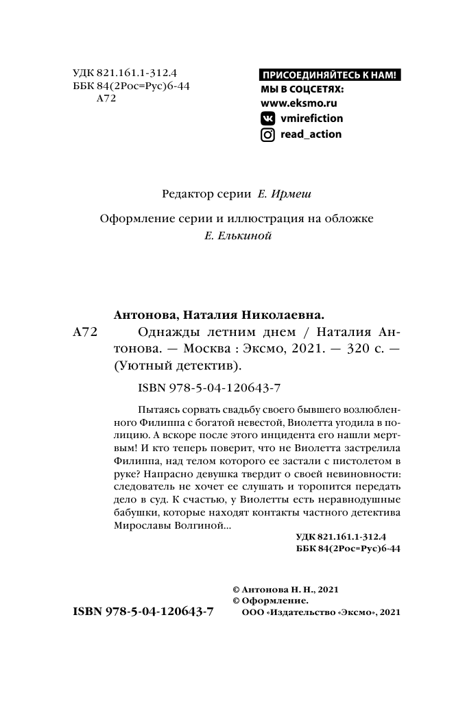 Книга: Однажды летним днем (Наталия Антонова); Эксмо, Редакция 1, 2021