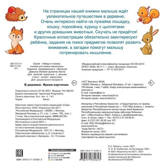 В деревне. Яркие картинки (Гайдель Екатерина Анатольевна); Сова. Малыш (Обучающая и развивающая литература), 2021