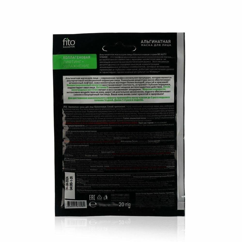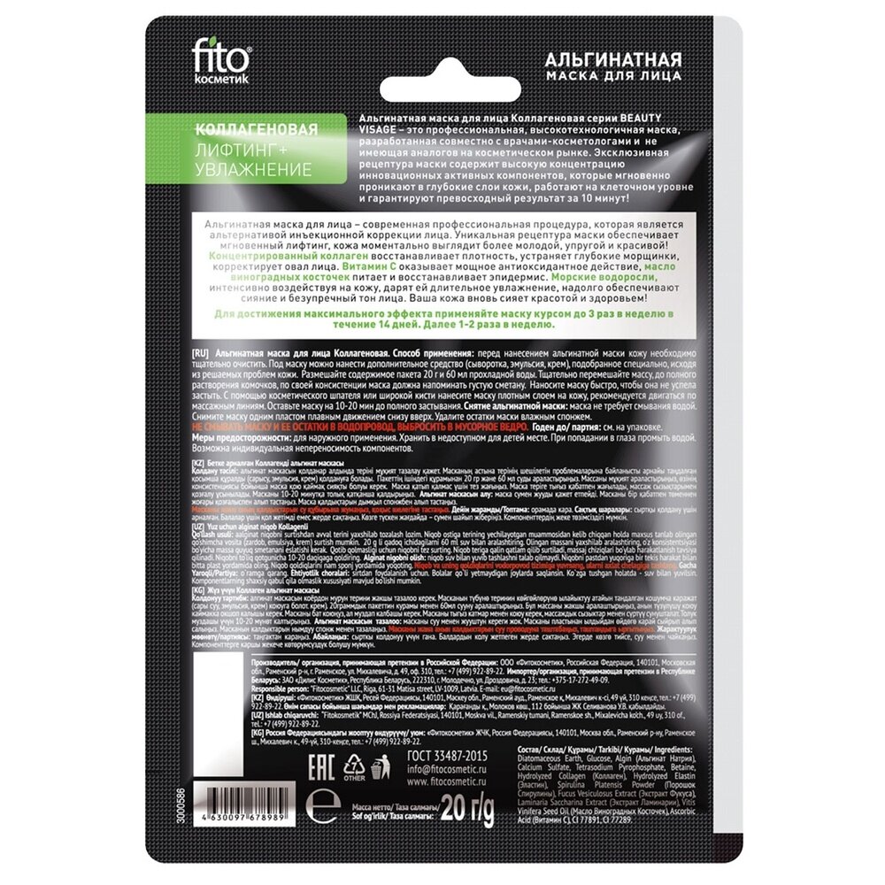 На сегодняшний день товар «Маска для лица альгинатная серии beauty visage коллагеновая fito косметик 20 г Фитокосметик ООО (503990)» можно купить с кешбеком в 1 магазине: Яндекс.Маркет