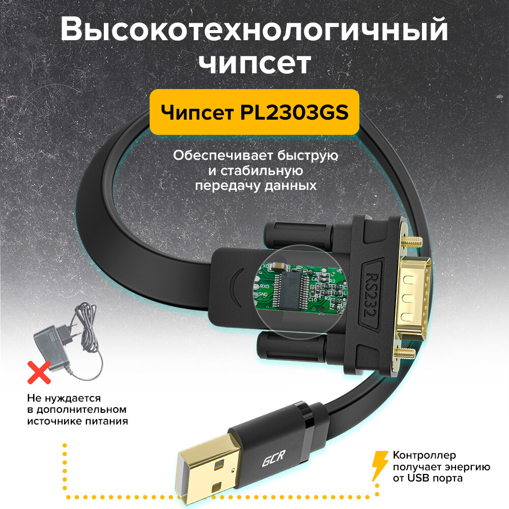 Кабель-переходник USB AM > RS-232 DB9M, служит для подключения профессионального оборудования с интерфейсом RS-232. С его помощью можно легко подключить к компьютеру принтер, электронные весы, кассовое или диагностическое оборудование.Благодаря плоской форме, кабель удобен для монтажа с в труднодоступных местах и под напольными покрытиями.Разъем RS232 также встречается на контроллерах, материнских платах, ресиверах, ноутбуках, промышленном оборудовании.Поддержка автоматического режима, не вызывает конфликтов по прерываниям с другими устройствами.Поддержка удаленной активации из "спящего режима" и управления питанием. 96 байт буфера для каждого верхнего и нижнего течения потока данных. Поддержка ROM по умолчанию или внешнего EEPROM для конфигурации устройства.Благодаря микросхеме Prolific PL2303RA, происходит синхронизация между двумя соединенными при помощи этого аксессуара устройствами. Переходник не нуждается в дополнительном источнике питания, так как контроллер получает энергию от USB-порта.Для производства кабеля используются только качественные и высокотехнологичные материалы. Проводник из бескислородной меди высокой степени очистки передает сигнал без задержек и искажений. Изоляция кабеля изготовлена из экологически чистого PVC пластика, защищающего проводник от внешних повреждений и обеспечивающий долгую службу.Произведен и сертифицирован для продажи в России.