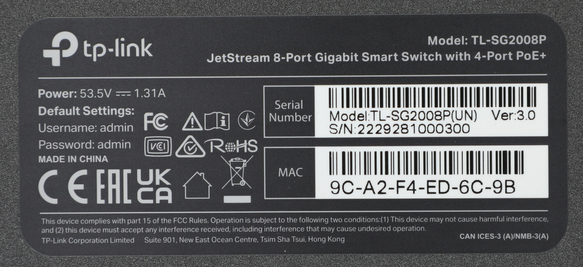 | Код вендора | TL-SG2008P |