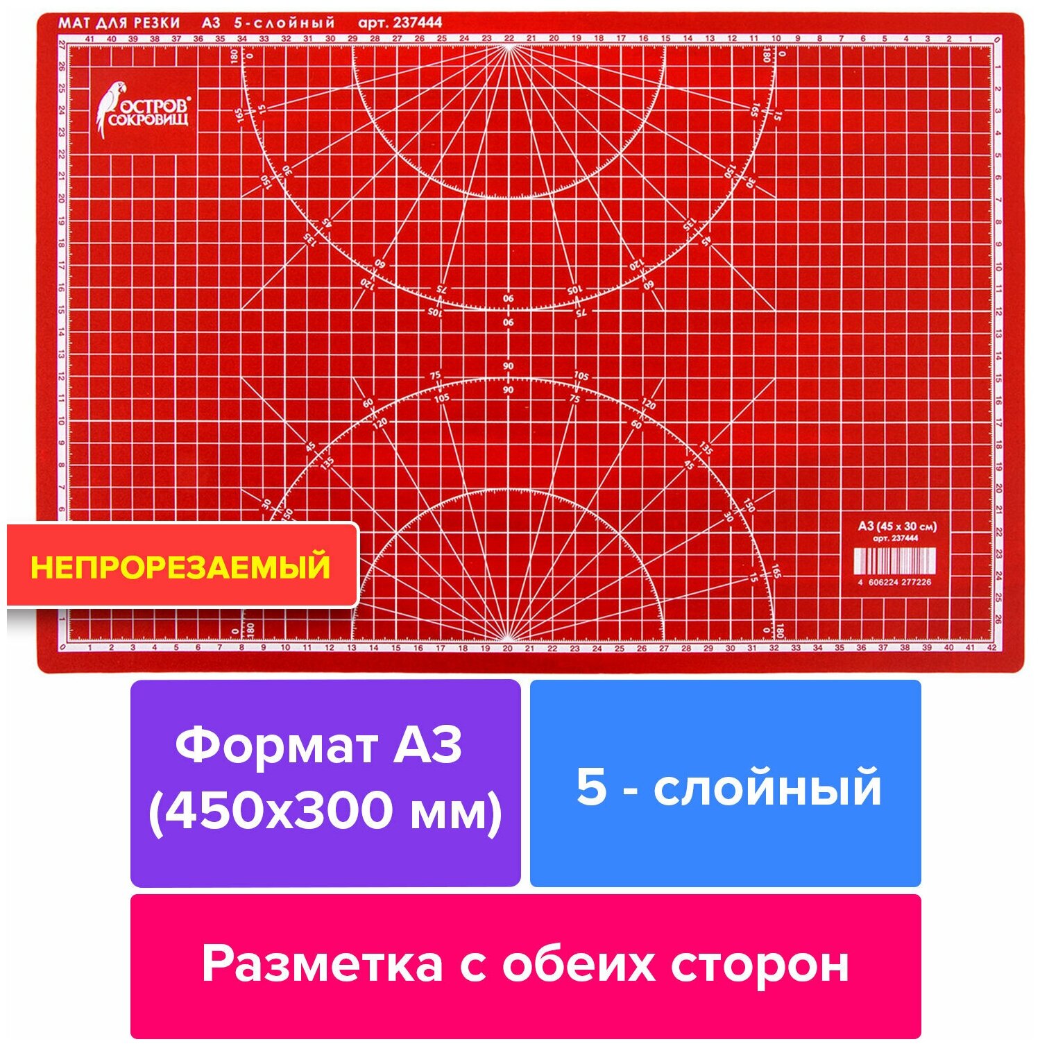 Остров Сокровищ Коврик двусторонний для резки 5-ти слойный А3 45х30 см