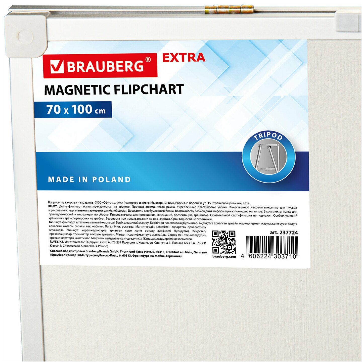 Магнитно-маркерная доска-флипчарт BRAUBERG Доска-флипчарт магнитно-маркерная на треноге Extra 100х70 см (размер: 70x100см)