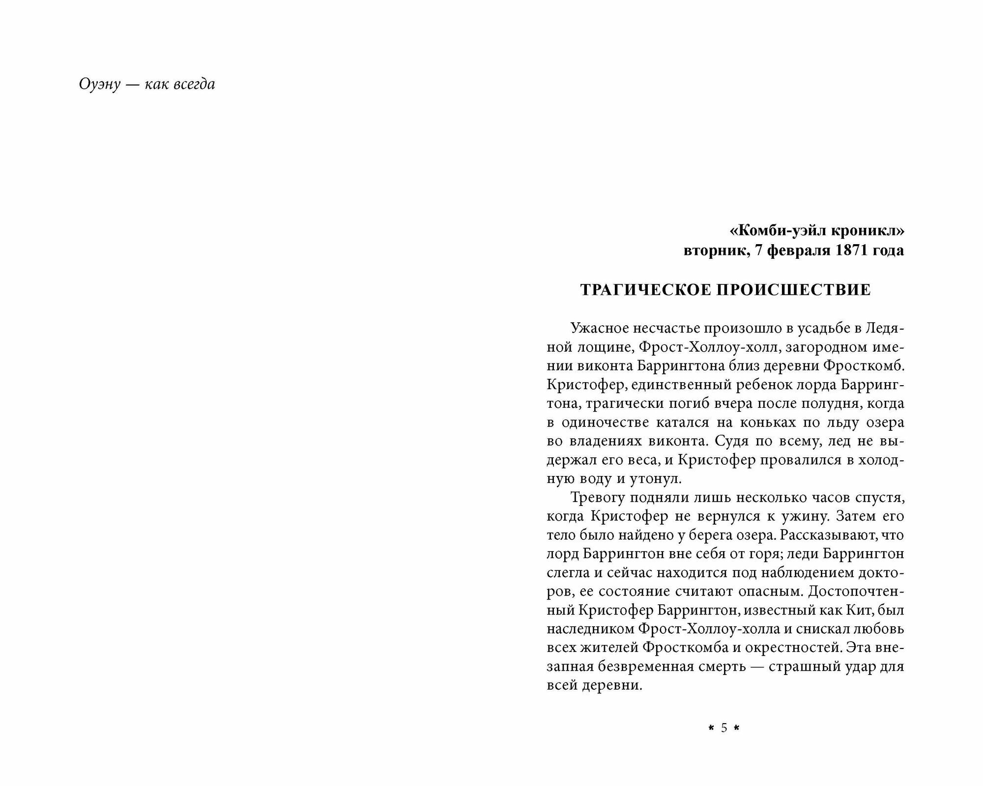 Это делает роман одним из самых удачных для зимних посиделок. Хотя речь о Рождестве не заходит (события случаются в первой половине февраля), морозной свежестью обдает знатно. Ох уж этот коварный февраль, когда ветры и стужа могут заморозить случайного путника насмерть.