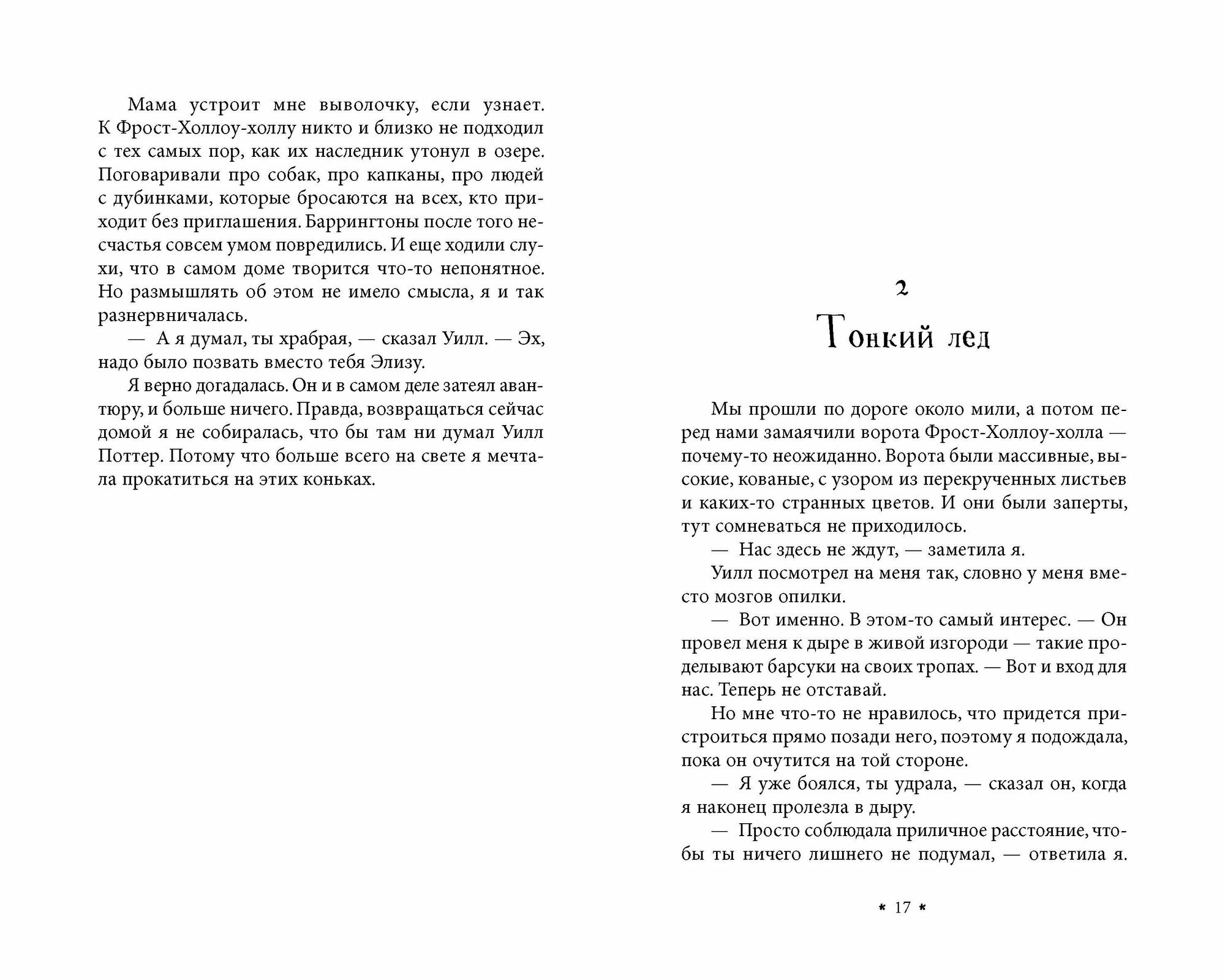 Когда Уилл Поттер постучался в дверь дома Тилли и пригласил ее погулять, она сразу отказала этому наглецу. Но Уилл достал коньки, и искушение оказалось слишком велико. Тилли не знала, что он выберет самое невероятное место для катания - Ледяную лощину. Вход в частное владение был закрыт. Впрочем, никто и не пытался туда проникнуть - после того как юный наследник имения утонул в озере 10 лет назад, в усадьбе творилось что-то непонятное. Говорили о призраках, однако Тилли не верила слухам. Но когда лед под ее коньками пошел трещинами и Тилли провалилась в ледяную черноту, она увидела пятно света, которое превратилось в юношу с лавандовыми глазами, похожего на ангела. Только глаза его были грустные, и Тилли поняла, что юноша-ангел несчастен и просит о помощи. И она не сможет отказать в ней своему спасителю, даже если придется проникнуть во все мрачные тайны Ледяной лощины…
