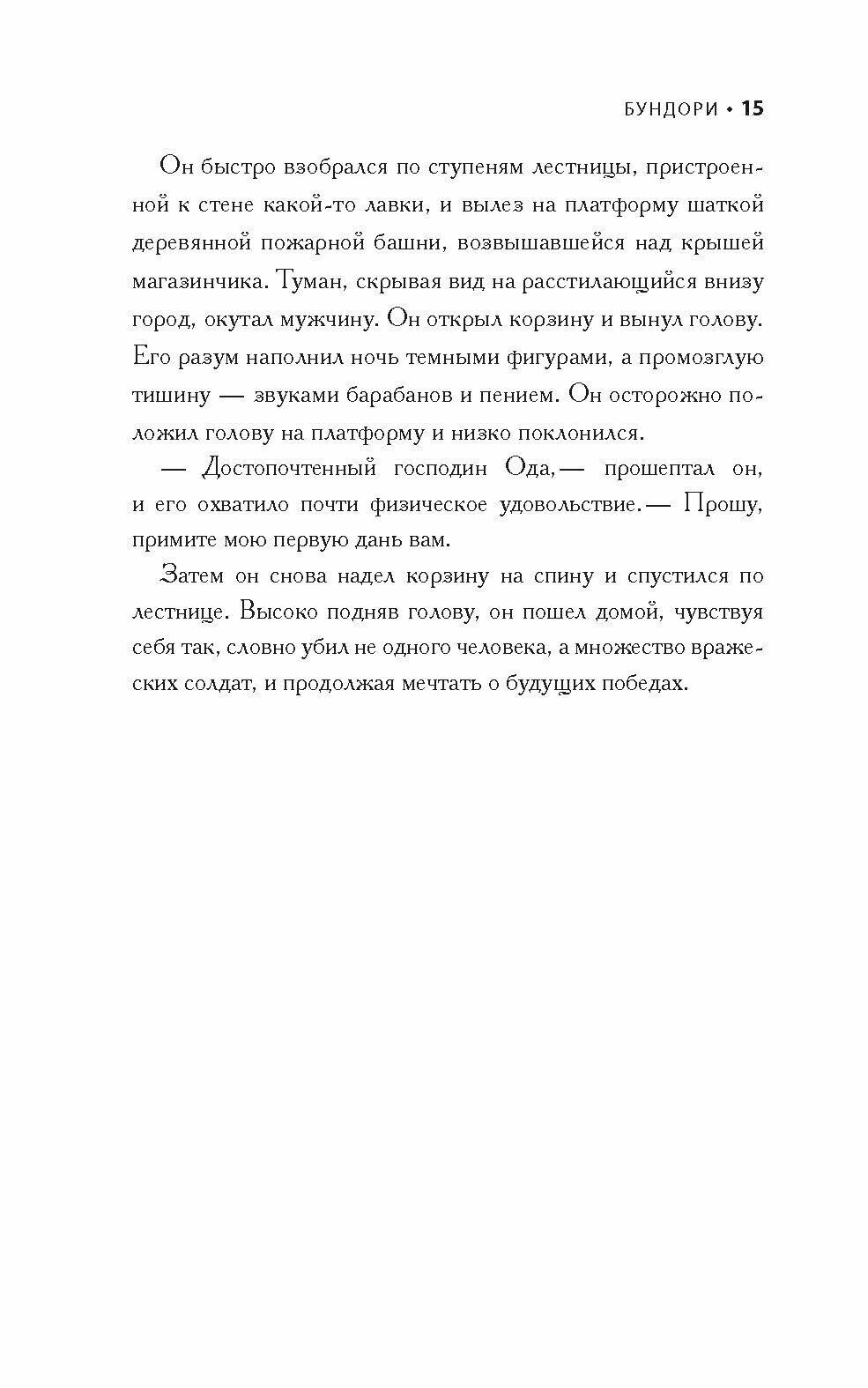 1689 год. Эдо, столица новой, самурайской эпохи сёгунов Токугава, охвачена волнениями... Неуловимый воин, а может, даже призрак, что ужасно пугает горожан, убивает самураев и из их голов изготавливает военные трофеи — бундори. Так делали сто лет назад, в пору, когда на островах полыхала война: первый сёгун Токугава бился за власть с могущественными князьями-дайме. Его внук, нынешний правитель, человек слабый и развращенный, поручает своему сосакану (следователю по особым делам) Сано Исиро найти и покарать убийцу. И Сано, выполняя поручение господина, ревностно берется за работу… Но вскоре ему становится ясно — преступника нужно искать в окружении самого сёгуна. И тогда Сано, строгий последователь бусидо, принимает решение: найти и убить злодея, а потом совершить ритуальное самоубийство — сеппуку, чтобы не бросить тень на великого Токугаву.
