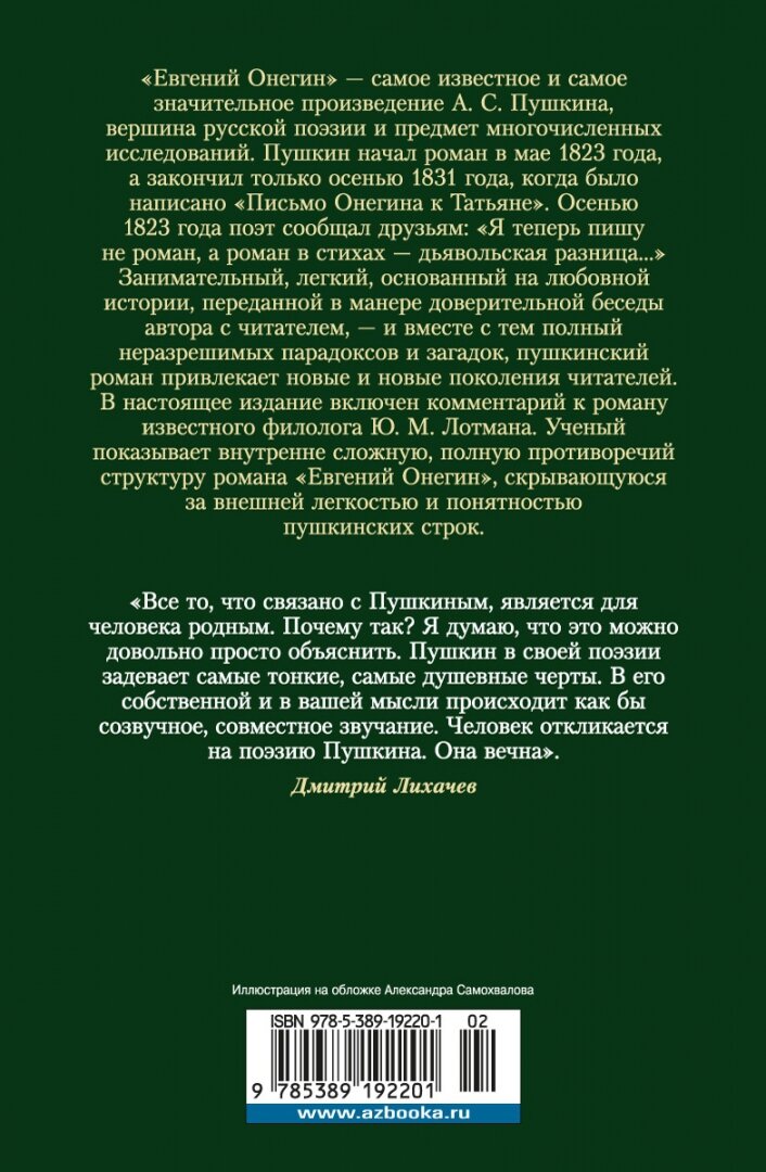Евгений Онегин с комментариями Ю М Лотмана (Пушкин Александр Сергеевич); Азбука Издательство, 2021